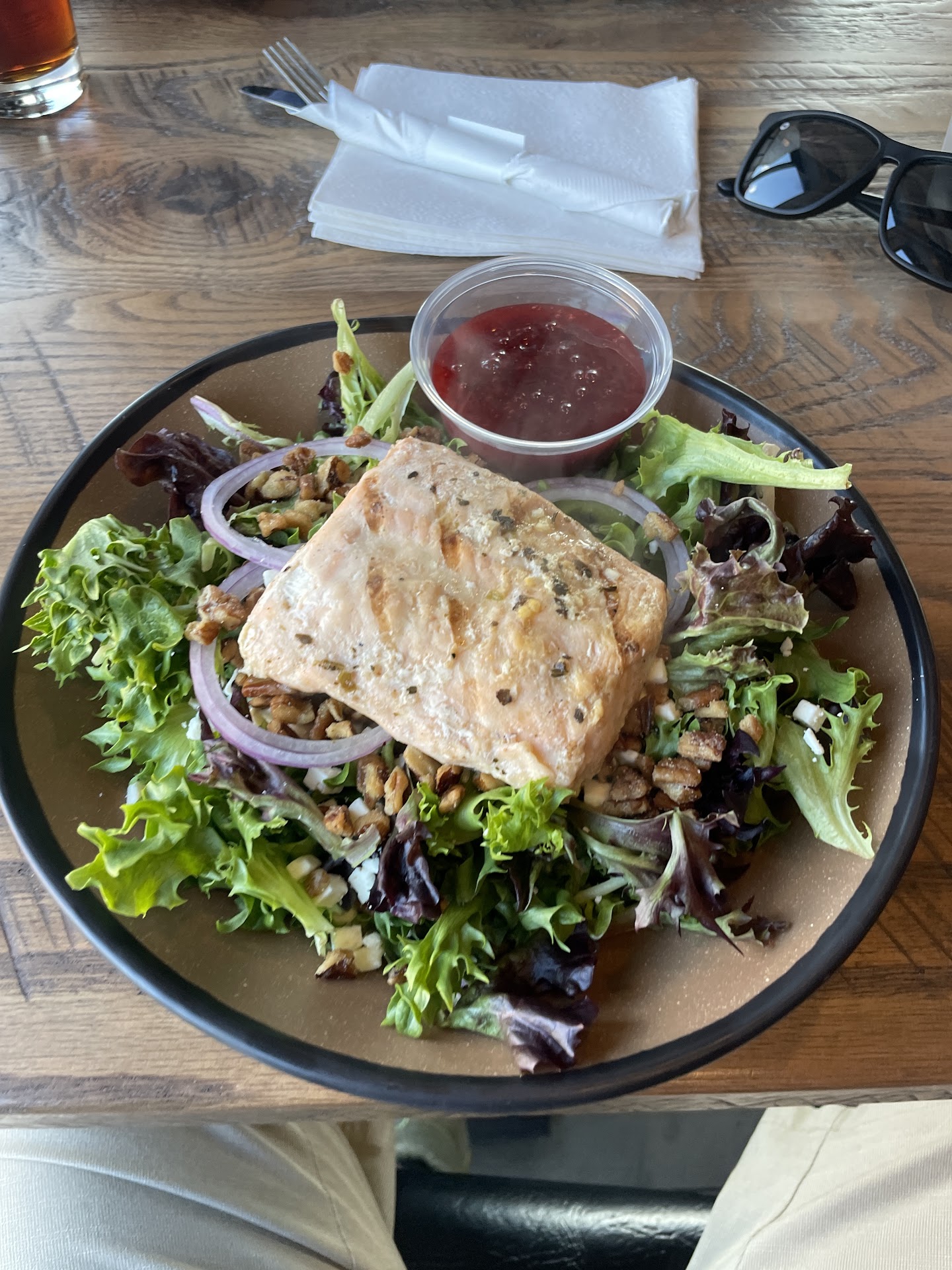 Food came right out and the salmon looks..sad. The best part was the PICKLES that came with the sandwich!! š„° my husband says the beer is average and...
