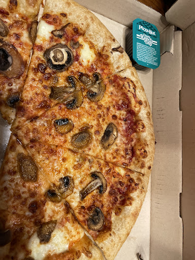 Read moreWe always order online per app or call ahead. Pinapple, red onion, pepperoni & of course cheese on reg crust is a fav. Also, the boneless buffalo chicken bites in honey bar-b-que sauce are always ahhhhmazing, every👏🏻single👏🏻time👏🏻 | Another fav is pepperoni, cheese, mushrooms & red onion | I gave 4 instead of 5 stars on the Food bc there’s has been a few times the pizza was either waaay overcooked orr half the slices was only crust | This is our family’s go to Pizza Place so we have always had a great experience with ordering & being done within 15-25 mins depending on day of week or how many pizzas ordered, that type of stuff. Has no affect on my eating though, stuff happens. So yes Pizza Hut is for sure a place to order & use your app to stack your rewards! One last thing, since we always ordered ahead of time I had nothing for the atmosphere rating....