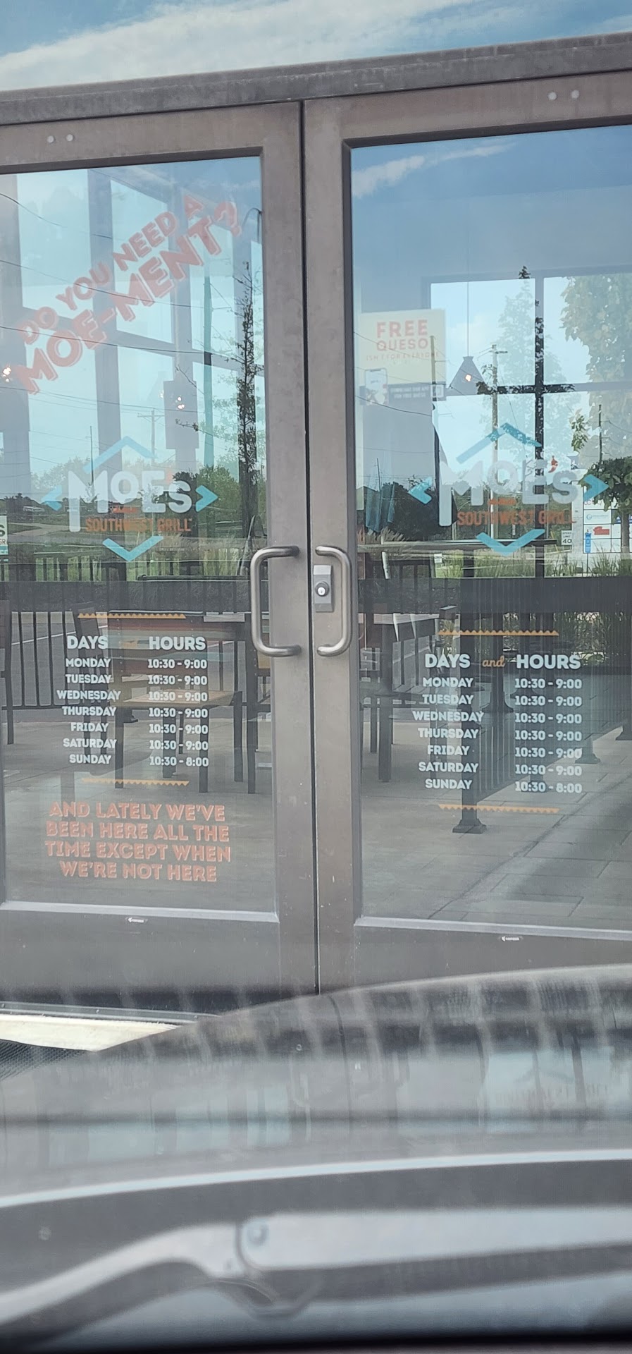 Read moreI LOVE Moes, but this location has messed up my order not once but twice. Some how the correct labels get put on each food item but the food itself isn’t always correct. I came through and got a chicken and cheese quesadilla, only chicken and cheese to get specific and after driving 20 minutes to get home, I realize that I got something totally different. I got the quesadilla, but i’m pretty sure it was made for someone who’s Vegan. Everything was in the quesadilla accept chicken and cheese. But, it had a chicken and cheese label on the packaging. I called the location and spoke with the manager. Kindly they were going to make me a new meal for free at my next visit. It’s just kind of a bummer getting home after a long work day and realize your meal is wrong. I just hope management and the co workers can learn from this, and maybe get some more training. I’ll continue to give this location my money only because it’s the closest location to me. But, just for future reference, and as someone who used to work in the fast food industry, double check EVERYTHING before it gets handed out the window. No body likes dealing with a Karen. My queso and salsa was pretty...