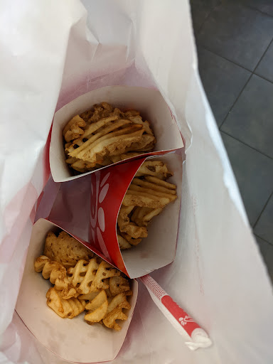 Alright, after eating at literally dozens of CFA’s all over the U.S., I have never ever had the repeating problem of a lack of fries. This location consistently leaves the box lacking. I have been told “they settled”, but when I see the employee place it in the package, turn, walk 5 steps and hand it to me, that’s a lame excuse. Unless she went through an obstacle course when I blinked, it wasn’t filled to begin with.