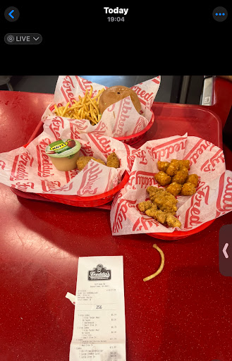 Read moreThis is a fun place! Freddy's is themed like a retro 50's diner. It has a good atmosphere, great service and great food. I love their food and their frozen yogurt! Let's start with the best part the dessert! With their frozen yogurt you can order a sundae or what they call a concrete, which is basically a DQ blizzard, and you can order pretty much any toppings you want. I got coconut shavings, pineapples, rainbow sprinkles, and toasted almonds. It was super yummy.