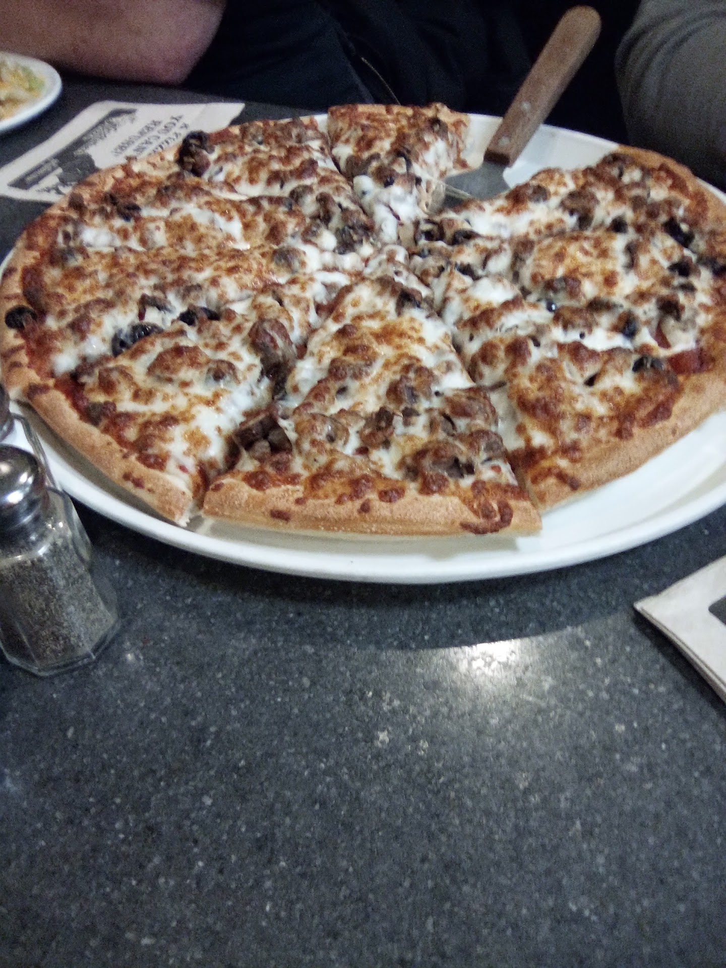 Read moreStopped for the first time at this location one hour before closing time on a date. Right away we were welcomed at the counter by a courteous gentleman who took our order with genuine enthusiasm. We found our seat and enjoyed a conversation while waiting for our order in an atmosphere that was filled with mild music and Godfather memorabilia pictures. After standard wit our pizza was brought to us piping HOT and smelling Delicious. After cooling down a few moments we dove into the tasty pizza loaded with toppings just as was expected. Shortly into our Wonderfully Delicious meal the manager stopped by to inquire if things were tasting good and if we needed refills, we stated everything was perfect (I don't use perfect lightly). We were made to feel welcomed like we were a part of the Mob lol. Upon leaving I disclosed to the manager we had eaten here for the first time and by far the best tasting loaded toppings Godfathers Pizza we've had in the Dayton area. 5 Stars! and 5 Thumbs up! We will drive the extra miles to revisit this location when we crave Godfathers attention again. Thank you for a spectacular experience. Oh and my date expressed it was the Perfect Date. Thanks Godfathers crew you will always have a special place in my heart for making our date most memorable... Can't wait...
