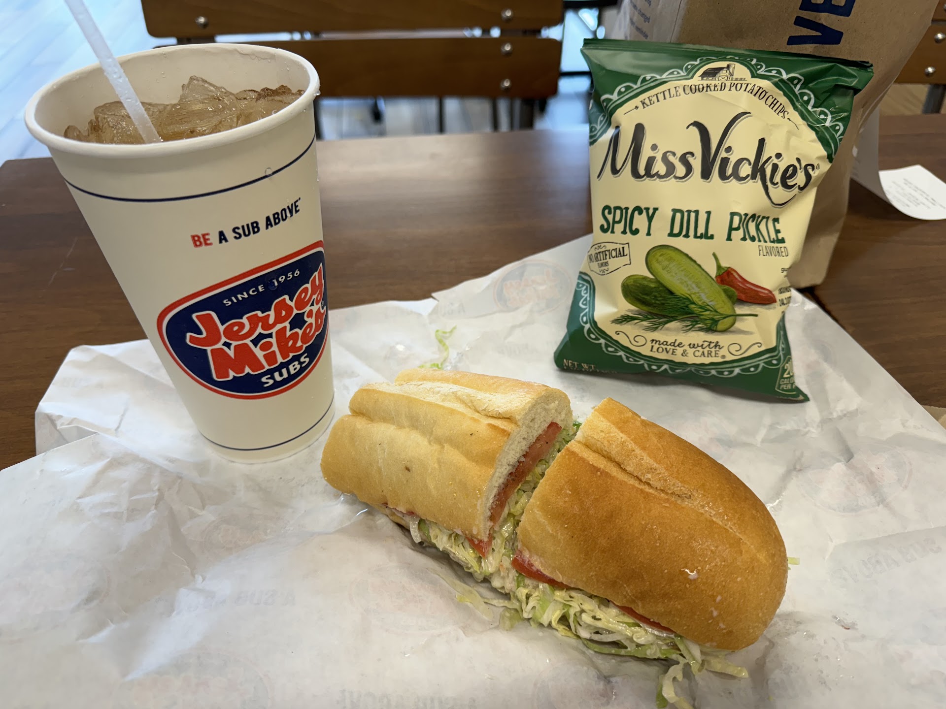 Really busy place for lunch. I don't think they keep their tomatoes at the correct temp. The guy before me said no tomatoes, but seemed like it was not because he didn't like them. Hearing this and being part of the food industry previously in life, tells you something. I ignored that one cardinal rule and got a sandwich for my son and I. My girlfriend did not get tomatoes. Well within 45-60 minutes both my son and myself were in the bathroom with the runs. My lady had no issues. This tells me the issue was with the tomatoes since that was the only common ingredient on the two sandwiches with tomatoes. When cut tomatoes go above temp they go bad quick, causing those that eat them to fall ill. Also, their soda nozzles are not cleaned properly. You can taste the mold growing in them. They have to be pulled out every evening and be washed then set in sanitizing solution till morning. Rinsed then installed.