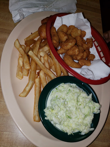 Read moreWhen we arrived, we had to wait a little over 10 minutes to be seated...definitely not because they were crowded but bc the cashier was chatting with a customer and ignoring us. (1st chance to leave but didnt bc the place was recommended). Even though there were tables up front, we were seated in the back in a less lit area. (2nd) The waitress acknowledged us but said she would be back bc food was draining. Other waitresses were over talking about they were chastised when they were standing around bc they had nothing to do but the owner had been talking with them earlier when it was slow. After order was placed and food brought out the waitress went on and on about not sharing pickles and coleslaw that huge slices of onion on it. No worries about sharing ANY of it. The fish was so tiny (nothing like the pictures). It was lukewarm and tasteless. The fries were not fresh. They tasted like they had been re-dropped in grease, were dark and hard. The second order of fish had to be sent back bc it wasn't even lukewarm and it was replaced with some that was dropped back in the grease but none of it was freshly cooked. The best thing...