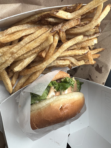 I don't mind waiting for good food this was slow preparation. The shoestring fries were good except mine were not hot. Next time I will dine in hoping for a better experience. I did drive about five minutes before opening the bag to eat. Normally I would not have eaten cold fries but the flavor was good and I was surprised I ate all them. Actually I shared a small order and between the two of us every fry was eaten. The fries serving size is ample, similar to Five Guys maybe a but smaller. Greasy shoestring are not the style of fries I warm successfully in the microwave. I imagine if served warm these fries would warrant returning.