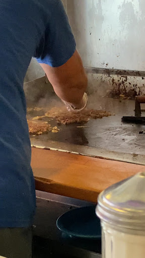 Price for 2 people was cheap. They even let us split a large fry. We walked in and even though there was a sign saying wait to be seated, the cook told us to sit anywhere we wanted. There is a long counter with stools and booths. If you're by yourself they don't want you taking a booth seat. This is because it's kind of small.