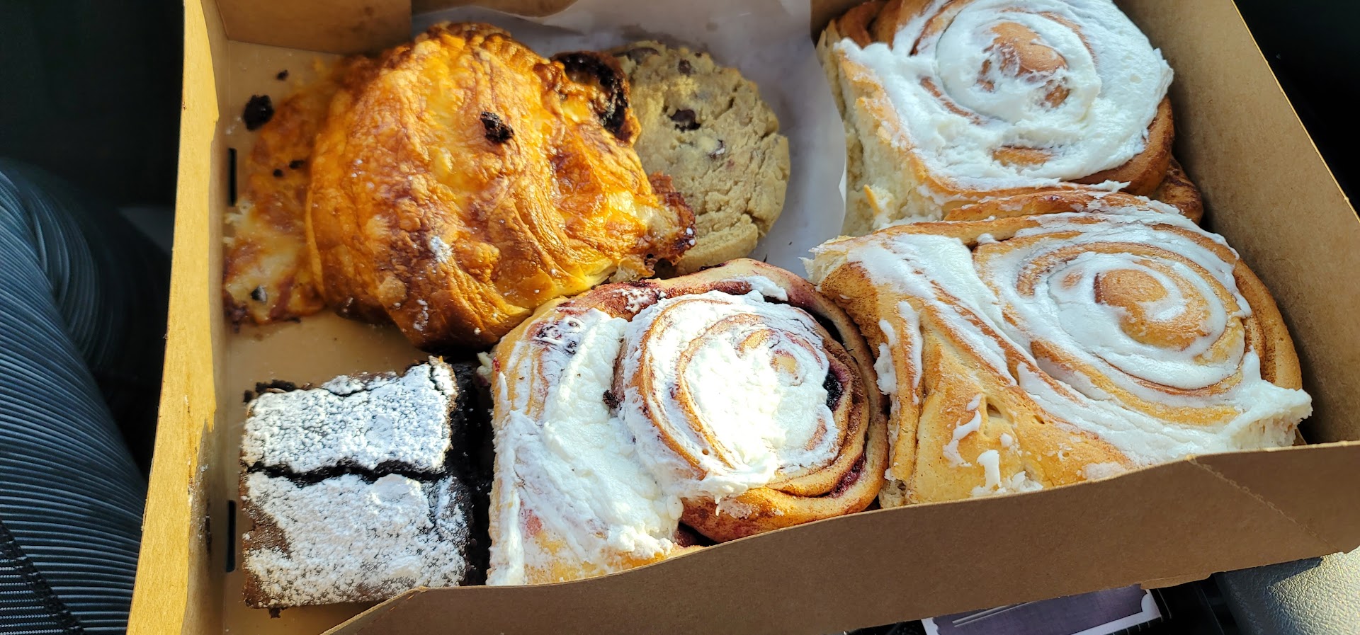 OMG is the only accurate way to describe this place. My girls and I stopped by today and got the stuffed croissant, blackberry and original cinnamon rolls, chocolate chip cookie, and gluten free brownie. When we got in the car, the girls asked to try the brownie and cookie. (Not gonna lie, I didn't want to wait until I got home to try them, either 😂) Anyway, the brownie was AMAZING!!! Like, best I've ever had. Close your eyes, toss your head back, and shiver kinda good. And we're not even gluten free folks. The cookie was slightly warm and gooey. Yum!!! There is no question that we'll be back. So so...