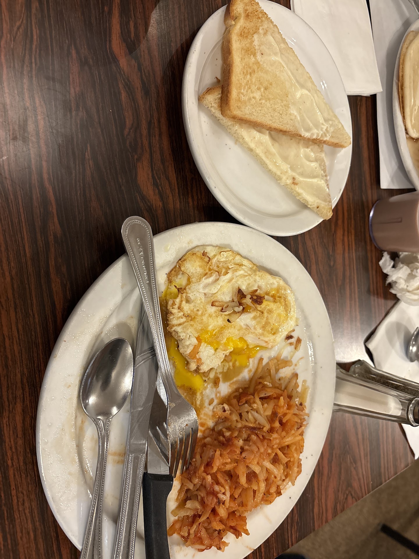 Read moreWaited for over 45 minutes to get our food. Food was sent back due to undercooked eggs, potato’s were also undercooked. The service received two stars because when the waitstaff finally came to our table, she was cheerful and efficient. The atmosphere is dirty. The outside looks like a dive bar, the inside has air vents that haven’t been cleaned in forever. The tables are wiped but the seats are not. Save yourself the hassle and drive the extra few minutes to the Medford location of this restaurant. They are ten times better than this dive. My recommendation is that Medfords management come to Central Point and retrain this staff in...
