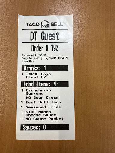Ā Ā Ā Read moreI had the worst service at the White City Taco Bell! After ordering on the app, I waited in the parking lot until it alerted me that my order was ready. When I entered the store I saw that there were no orders in the pick up window; and when nobody greeted me at the the counter, I had to ask for it. They told me that they had accidentally given my food to somebody else. They remade it for me while I waited for the second time. I asked to speak to the person in charge, and all 4 employees ignored me, they just brought the bag to the counter with 2 coupons for a free taco on my next visit. I was halfway home before I realize that the drinks were missing. By the time we turned around and went back, the drive through was empty, so we drove through and asked for the manager. The young lady who dropped off the coupons with the food said she was in charge. And then she lied to my husband and told him that a customer must have taken the food off the shelf and that the drinks were also there when they made my order the second time and that I must have left them behind. I know for a fact that the shelf was completely empty when I asked them for my order. The pick up area was dirty, with trash and sauce packets and the cooking area was also dirty with food all over the floor. There were 4 workers, one dine in customer and at about 8 cars in the drive through at approximately 3 pm on a Sunday the first time I ordered and expected halfway decent service for my over priced, halfway decent...