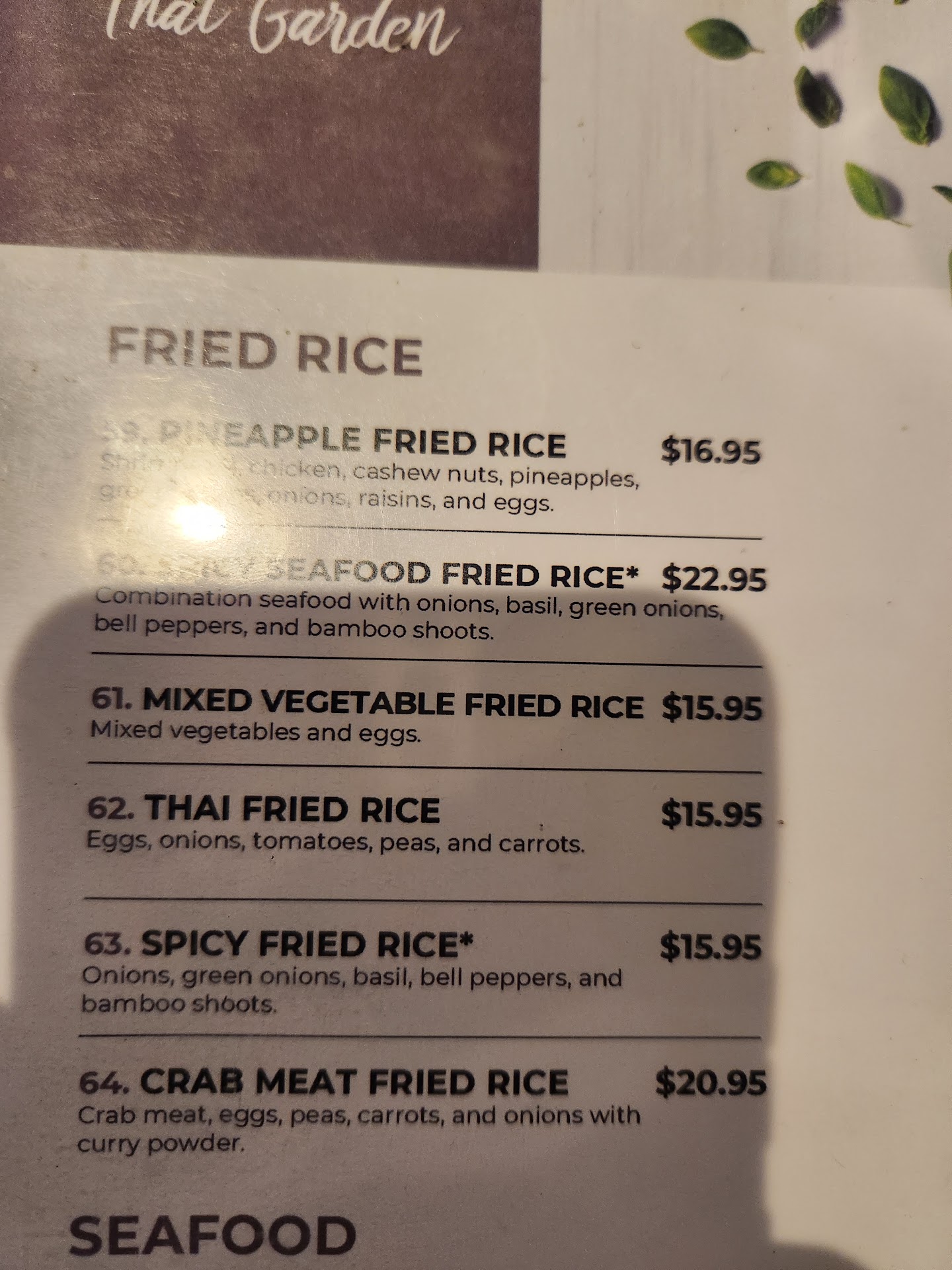 Read moreThis food is truly made of love, and it's apparent as soon as you walk through the door. Some times the feel of things and places can be hard to describe with words, this is one of those times. Real smiles, real gratitude for your patronage, and real food that leaves you questioning why you would ever eat anywhere else. We were there up until 15 minutes after close, and not rushed one bit. The kitchen is semi open to the dining area. Every time a customer left, the cooks, servers, and hostess thanked them with big smiles and wished them a good evening. I would go into the taste and quality of the food, but I'm certain that I can do it no justice...just try it yourself! Thank you so very much Thai Garden for serving food the way it should be...