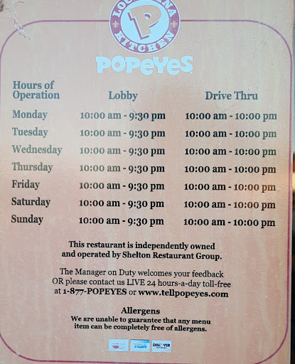 Read moreI've tried this Popeyes twice now and twice I have been beyond disappointed. It is clear that the owner of this store is in no way involved (probably lives out of state). Every night they turn the outside lights off as soon as it starts to get dark. I thought this was a mistake at first, but I now realize it is because they want you to think the store is closed. They do not want to serve you. They do not want to do anything. The first time I went I went around 6:30 and I was told that the drive thru was closed and that if I wanted something I would have to go inside to order. I parked and went inside. All of the chairs were flipped and it looked like the store was closed. When I went to order, I noticed a very strong weed smell coming from the woman who took my order. Whatever. That's no biggie. The woman told me there was gonna be at least a 30 min wait for my 8 Piece family meal. I said, "no problem," flipped a chair, and sat down. I had my food about 8 minutes later. It wasn't very good and the fries were cold. That was about a year ago. I decided to try again today and more of the same. Lady on the intercom told me she was the "only soul working" and it would be at least a 20 minute wait for anything. I said, "fine. I will wait." And then she told me it would be ready in about 5 minutes. There were at least 4 people working when I drove up. It is apparent that they just want to discourage people enough to leave and not order anything.