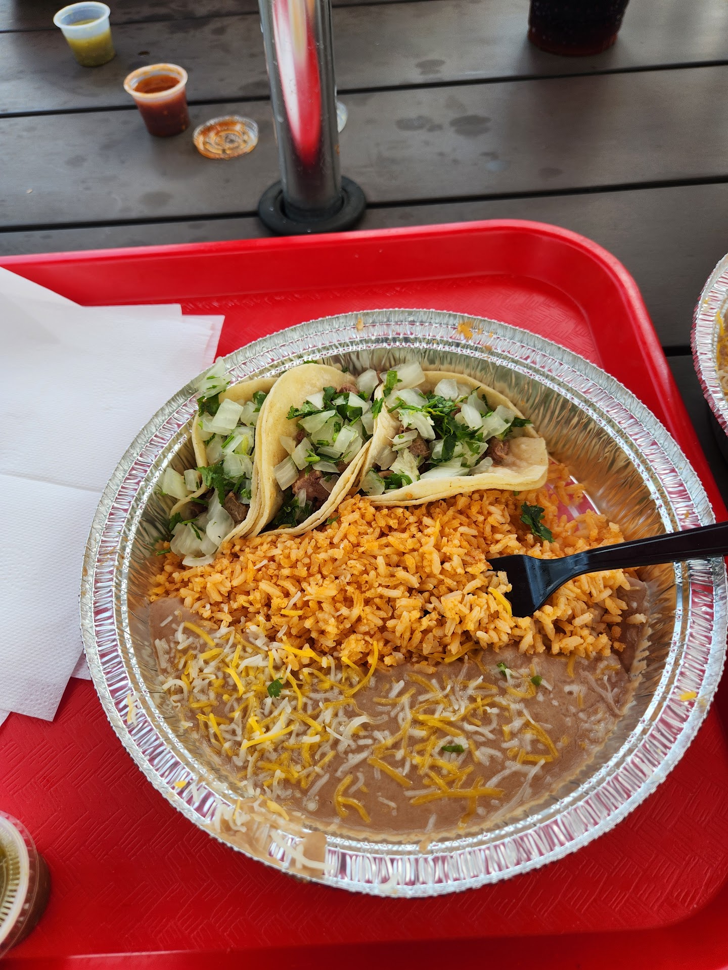 Read moreDecided to give it a try, local radio pushing adds for them. Number one, no parking, you will need to infringe on other business properties if you need to park. Food was hot and ready for pick up, got the enchilada plate. Rice and Beans looked good and was probably the best part of the un finished meal. The first thing i noticed is the chicken had a taste of old, or reheated. And you need to cut back on the salt. Good grief, needed a gallon of water after that. To be honest i would say Taco Bell has better flavor considering what it is. In the world of Sous Vide and steam tables they could have figured out a way to cook and store their protein. I do a lot of BBQ, and Grilling. I do pulled pork and chicken all the time, i can bring back to service temp from the freezer and have a better outcome in flavor. I wont be back, sorry, the gorilla advertising on radio may keep you in business for a while but eventually time will...