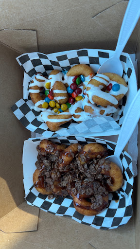 Amazing! So many toppings to choose from. We got a 4 pack ( 24 donuts total/4 topping selections) and strawberry smoothies. The donuts are soft and light. We got the Bed rocks ( raspberry sauce/syrup and fruity pebbles), Sandy (cinnamon and sugar with honey and sea salt😘 MY Favorite), Sprinkles ( says it was White chocolate sauce? And sprinkles but looked like honey 🤷♀️) and Chocolate Rocks ( chocolate glaze and chocolate pebbles). The smoothies taste like they're made with fresh strawberry, seeds and all. Not overly sweetened. Very refreshing! The 11 year old approves. He really wanted me to post this and support...
