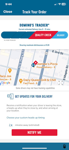 Ā Ā Ā Read moreI received the message my order was ready. I used the pie pass that told me it was ready & to come in & get it. It took a bit for someone to help me. It didn't matter I had told them I was coming in. They didn't know who I was, which I thought that was the point of using the pie pass. Only 2 of 3 items were ready. They had to ask for my sandwich to be made quickly. I stood & waited while my other items sat there. It took more than 5 more minutes. They offered me a soda while I waited, which I declined. Waiting gave me time to do this review. I don't believe this Domino's had good customer service. This isn't the first time I've had a problem. Maybe they will listen to me now.....?