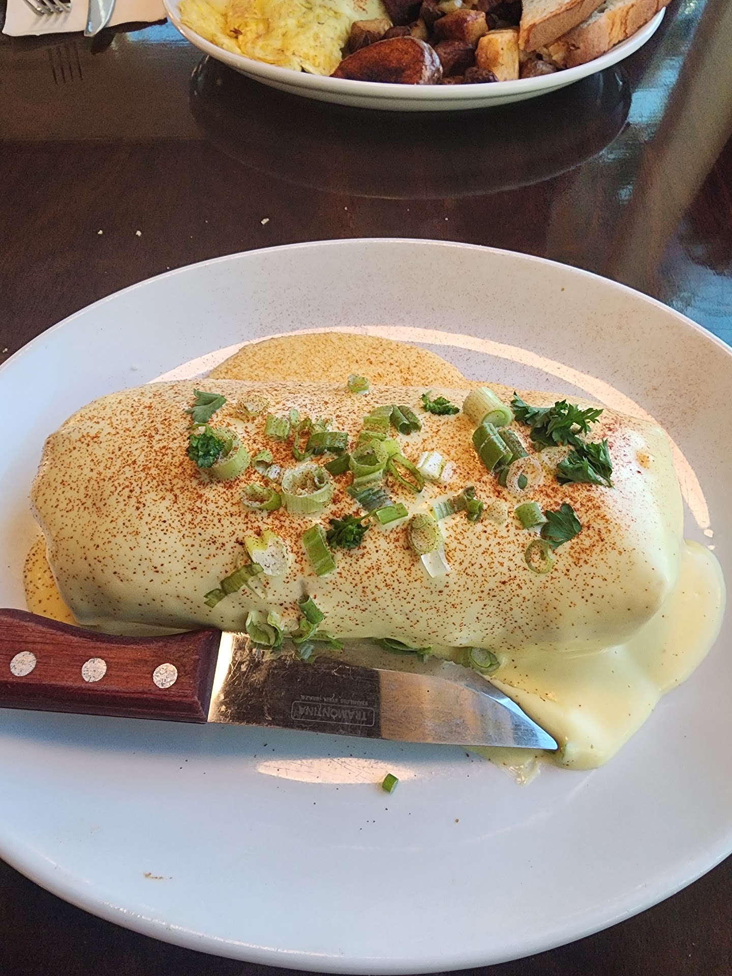 Ā Ā Ā Read moreWelll.....good to have an up and coming restaurant finally that will be around awhile. Especially as seeing this probably the 3rd or 4th try in this spot that we know of. Service was great. We were seated right away and that's awesome for how busy this place can get. Tabls are kinda smallish, but that's only because they have a rather large(for the size of table) condiment tray. Think if they need to trim everything way down. That would really make things a lot easier for space management. Especially when you have a Pancake the size of a medium pizza! Holy moly! Ok, so how was the food....hmmm....I have some suggestions. Only because I like this place and want them to make it. So sometimes ya gotta go with it. Hollandaise sauce needs lemon juice in it for the Benedict plates. Not trying to be picky, but it needs it. Other than that it was great. Pizza pancake...please quit using the lite maple syrup. I mean for christ sake I just ordered a pizza size Pancake, do you really think I'm concerned with weight? Also, please double down on the vanilla used in the batter. The cake part was a little...mmm, tasteless? Sorry! Quit serving it on an aluminum pan. Maple syrup and aluminum does not bode well with each other. Or, an even better idea would be to switch to a blueberry compote/syrup? How about a pistachio infused maple syrup? Still, lose the aluminum pan. I will have to say, good job make such a huge pancake. So there you have my dissertation on our first try at this new place. Good luck in the future, we will be back to try...