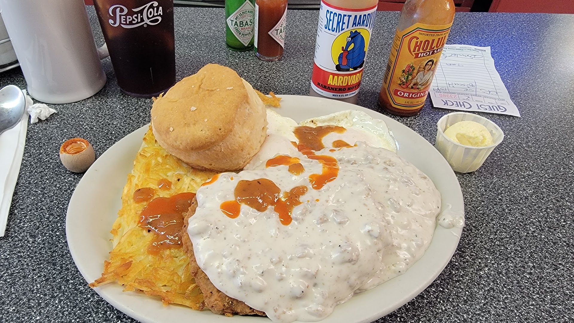 Our first time in…definitely NOT our last! Feels like family! Walked in seated ourselves and immediately was noticed by our waitress… Bingo😉 I immediately knew they were going to be good! I didn’t catch your name (long blonde hair, very nice, sweet smile and knows how to great & people!) We got coffee and ordered 2 large chicken fried steak breakfasts. Fancying myself as somewhat of a officianatio (kidding) of chicken fried steak, let me tell you about the, crunchy, perfectly cooked, cuts with a fork bites devoured. Not greasy and burnt, like the last place we ate …(coughcountry cousin cough) Don’t get me started on how I don’t regret ordering extra gravy. Comes with plenty but I married a gravy lovin Man! Golden hash browns, perfectly buttered sourdough toast. I am suuuper picky about my eggs but Can you say perfect, gooey golden, hot, not runny or overcooked. Y’all… Friendliest place we’ve been to in Centralia. Oh and when my Husband mentioned he was craving a little whipped cream on his coffee, not only did he get it but the asked if he wanted sprinkles 🤣 but in a nice way. Thanks for starting out our day so well. Now, to...