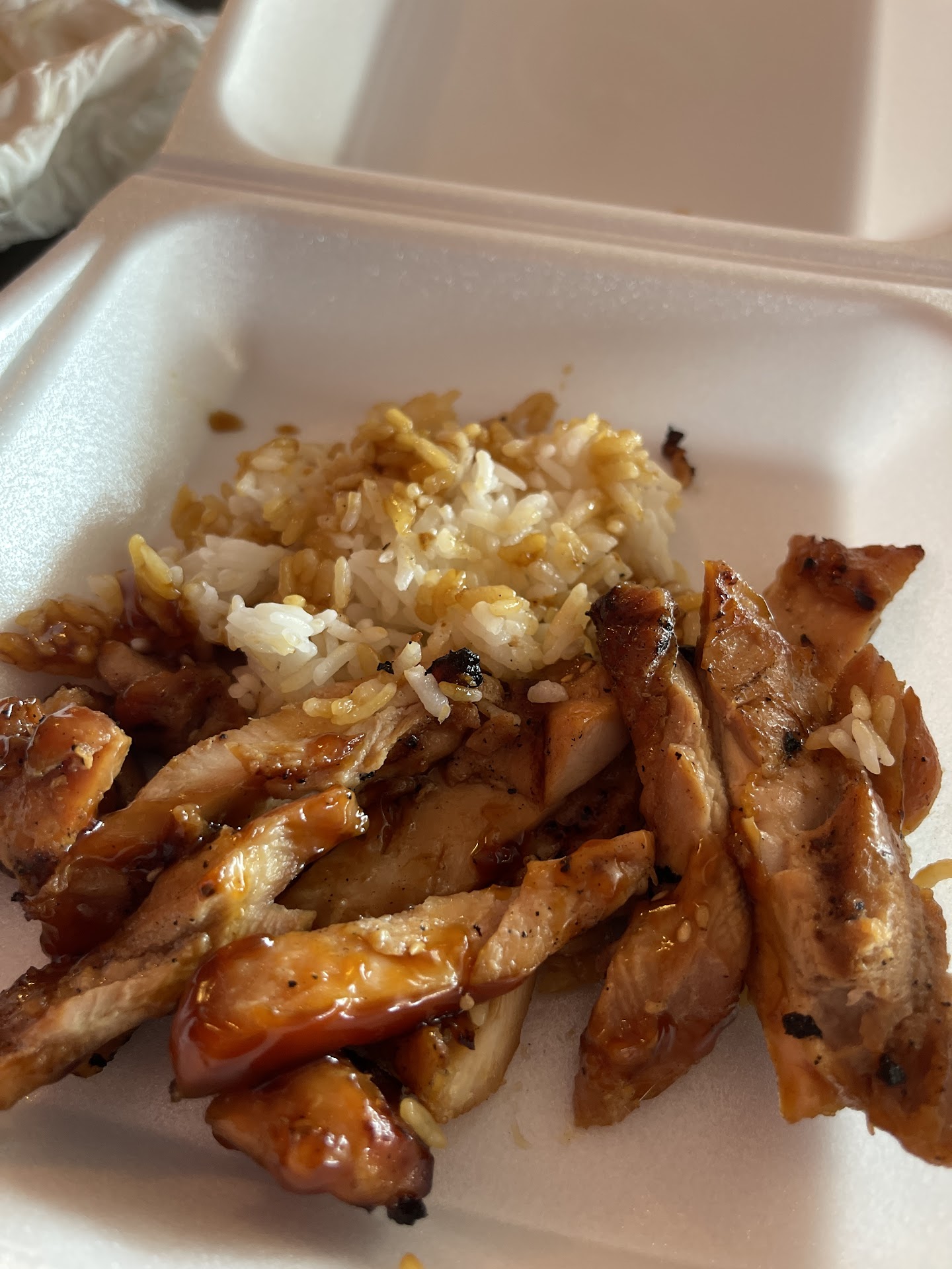 The service was very friendly. I was starving when I popped in and I was surprised by how fast the food came out. I ordered the spicy chicken teriyaki (requested very spicy). I love really spicy food and was satisfied with this dish, the chicken was cooked perfectly, tender but a little crispy on the outside. The steamed veggies and rice were also good.