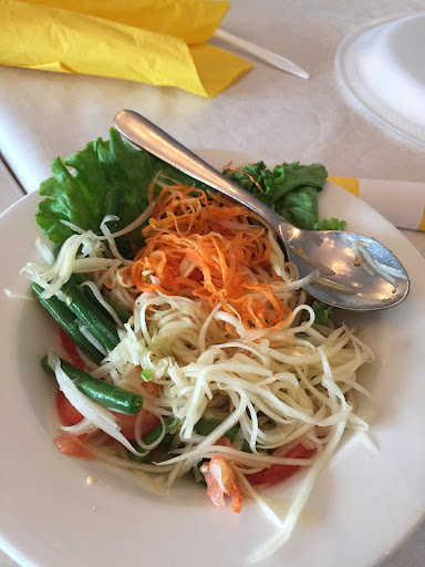 Read moreWe were really craving fried whole fish so we decided to stop by here for dinner. We ordered a papaya salad to start - the salad was fine but the peanuts in the salad were old. When nuts get too old and have that weird taste? Theirs had that - get new peanuts! We were also one of only 3 tables in the restaurant on a Saturday night the whole dinner, but a simple papaya salad took a while to come out (compared to other places usually) We then ordered the whole flounder with chili sauce on the side. It was $40 market price that day. It came out very brown - overfried. Again, how do you not keep your eye on a fish frying with only 3 tables? Needless to say, the fish meat was dry and not tender. The chili sauce also was way way too sweet. There was no "chili" taste to it, it was more like a sweet onion sauce. The servers were all nice, but the food...what a...