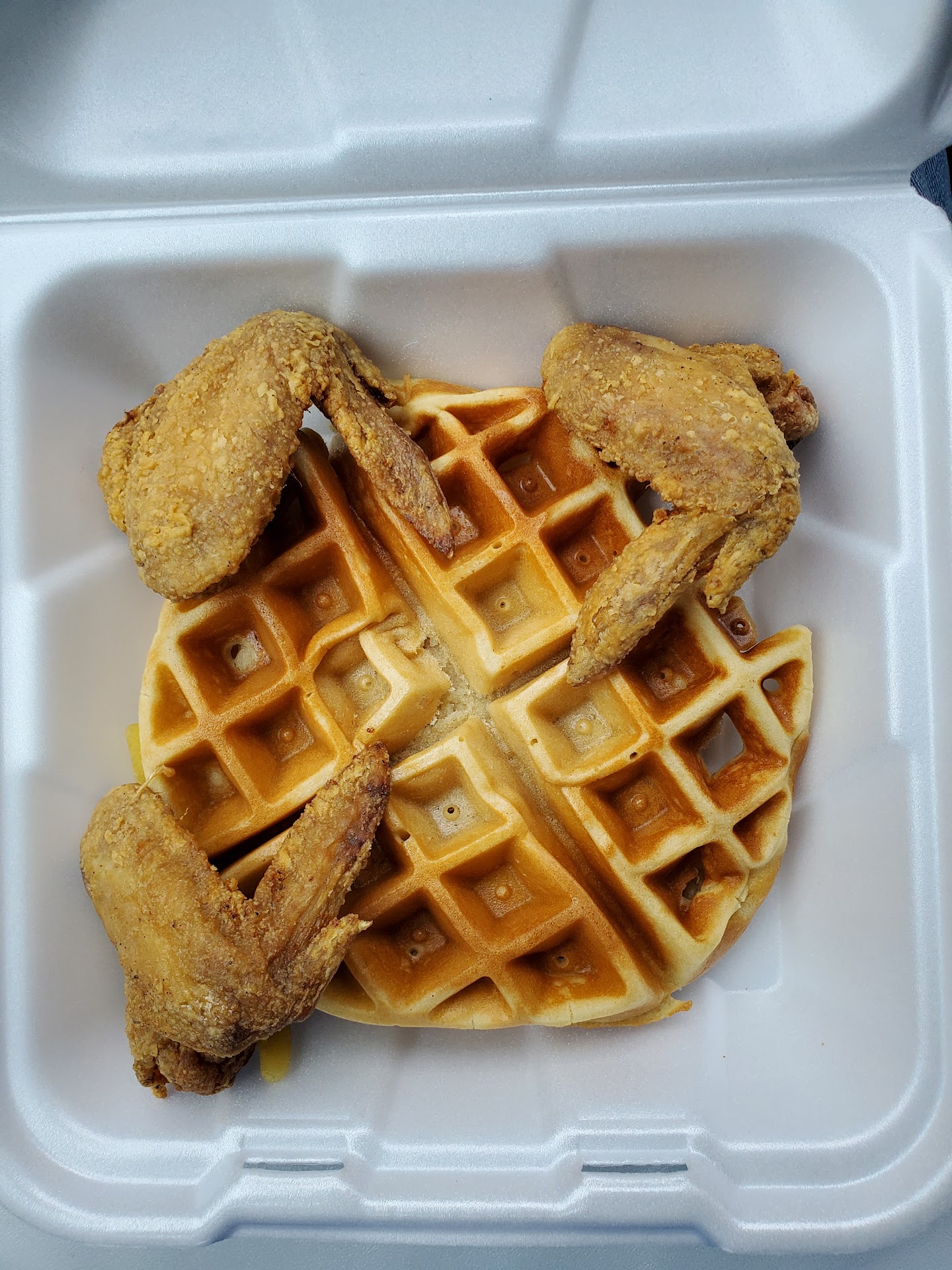 Ran across this place today, and decided to give it a try. I'm sure I've passed it many times and never noticed it before. It got my attention today. I tried the chicken and waffles. You can get either traditional wings or strips. I went with the wings. The waffle was fluffy, pretty, and delicious. The wings were well seasoned. I'll definitely visit again. I would suggest calling in your order and picking it up! You can pick it up at the window...