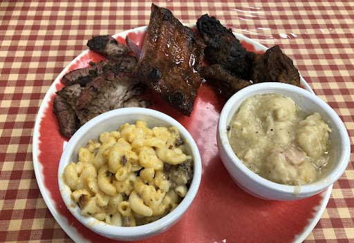 Came in at 11:08 Saturday morning and we were the only customers in but they were very busy. Advanced orders were stacked on most of the dining tables. Found out Marshall was having their Homecoming game and most of the orders were for tailgating customers. They were putting together orders or double checking orders to make sure everything ordered was all there. The staff was super friendly and accommodating even though they were not ready for customers dining in. Had to clear a table to sit us. Should have left then but was really craving barbecue and I knew theyâre closed on Sundays. Ordered the sampler (Brisket, Ribs & Smoked wings w/ mac n cheese & chicken n dumplings) and this is where it went downhill. Look at the photos of the plate, it didnât look appetizing, smoked wings were tough n chewy. The ribs were okay, rub had good flavor just maybe a tad heavy handed on the cinnamon/cocoa. Brisket was tender and was flavorful. My main issue was, aside for the sides, the food was cool, not cold (you know that temp where you take food out of the fridge and heat it up in the microwave but not long enough to get hot?). The steaming smoked wings photo was straight from the microwave. They looked good but imagine how smoked wings taste after being nuked to steaming level, not good :( I have to mention that their chicken n dumplings is great!! Best one Iâve had in all my travels.