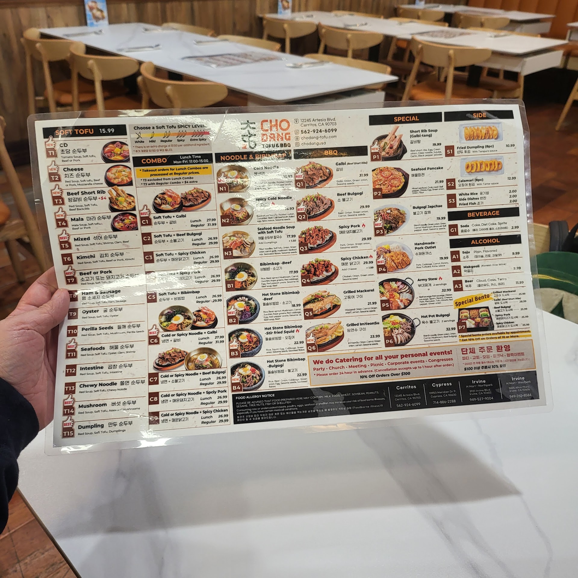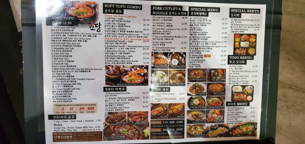 Read moreI craved a hot bowl of tofu soup (soondooboo) on a rainy and cold evening, and Cho Dang Tofu restaurant satisfied the craving. Not once had a bad experience with their quality and taste on my past visits. I ordered the perilla seed with mushroom soondooboo ($12.99) at the medium spice level. For the first timers try the seafood & beef or my favorite bean paste soondooboo that comes with clam, beef, and mushroom. The meal comes with a container with the yummy side dishes (banchan), white rice, and a fried fish. I recommend that you reheat the soondooboo in a pot and add an egg immediate after you turn off the fire.