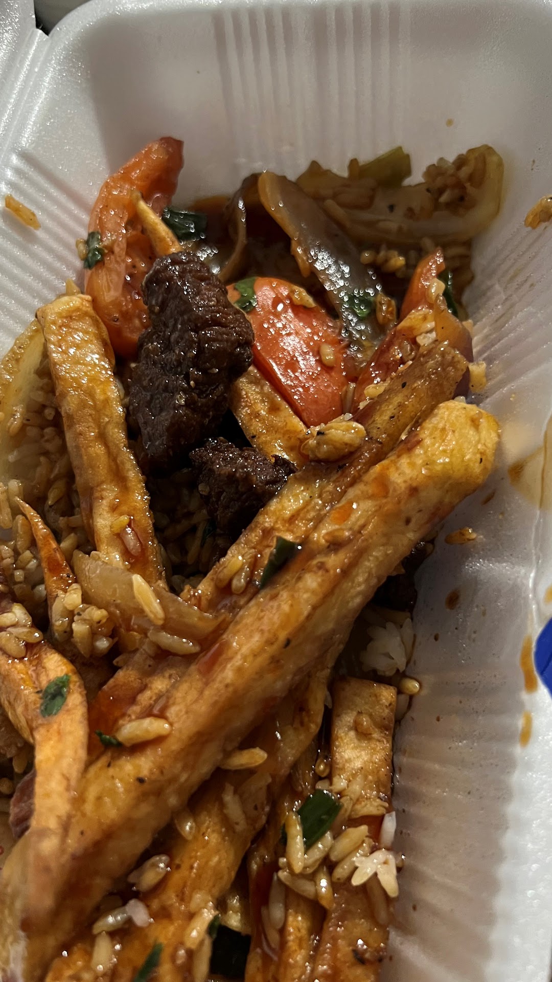 LOMO SALTADO : it had so much soy sauce that all you can taste was the that "soy sauce" no flavor, cooked bad , there was no season more less drenched in soy sauce !! MY STOMACH WAS UPSET AFTER EATING THIS . was it because we were almost the customers ? or the chef likes soy sauce that puts so much food is not good