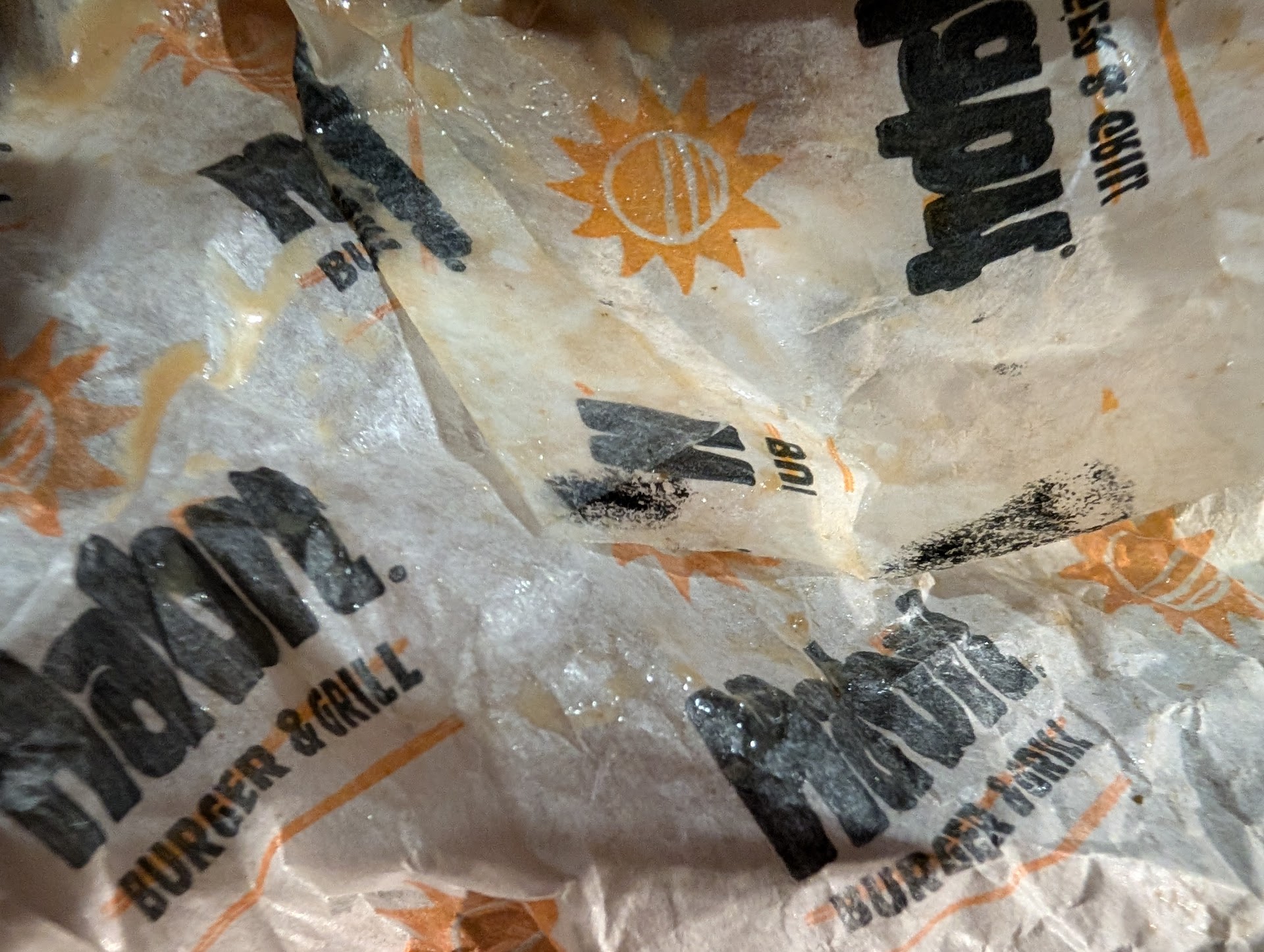 BBQ bacon charburger w/fries - Bacon, onion rings, cheese, mayo, pickles, tomato, lettuce & raw onions. Lettuce-wrapped, per request. This hit the spot for my tastebud burger hiatus. The patty was juicy, with crunchy bits of salty bacon & onion adding texture with each bite. The tomatos & pickles were bright & fresh. The BBQ bacon charburger was a decent size, and very good to eat. The fries were thick, crunchy on the outside & fluffy on the inside. After adding a dousing of malt vinegar & Cholula as dipping sauce, the fries were filling & A-OK.