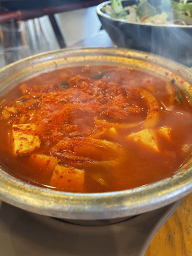 Read moreSaw high rating on this so we thought of giving this a try. Was intrigued with the "korean hot pot" part. It did not disappoint! We had Hae Jang Guk and combo Bulgogi and SoonDuBu Hae Jang Guk. The broth from Hae Jang Guk was deep and rich as soon as you slurp it. The pork was tender. Everything was well seasoned! Wasn't sure if the banchan was free refill so we didn't want to ask (didn't want to get charge for refills of banchan (some places would be sneaky in adding this to the bill)). The waitress at one point did offer to refill the fish cake banchan, and that was it though she didn't offer to refill other ones. Anyway, everything was amazingly delicious! Came for an early dinner on a regular weekday so we got sat down immediately. Definitely recommend those who wants some korean hot soup/korean dishes. We would come back next time to try their other menu. Love the decor and openness of the space too, made it feel very welcoming! Parking was easy. It's located next to other businesses so it was convenient to walk around and digest the good food after eating there....