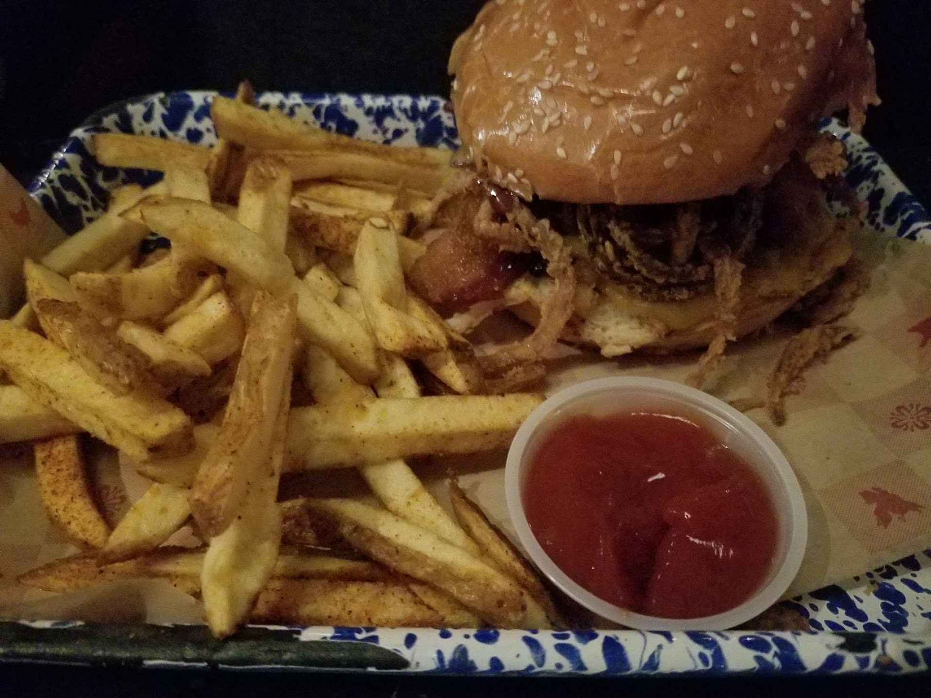 Read moreOkie dokie i have been looking forward to coming here for a while i received a gift card for this place and i was eager to try it out. I had made a reservation for 2 at 8:15 i arrived at 8:13 and was sat at 8:17 which is great considering the walk in wait was 1 hour 45 mins but when i was seated i was pretty annoyed that my view was of the restroom and the kitchen but i made the most of it and me and my husband sat on the same side of the booth to avoid seeing the restroom. The waiter Nancy was so nice i really enjoyed her enthusiasm she was great i know it was super busy i felt like maybe she had a lot on her plate, my husband went almost his whole meal waiting on his refill of soda but she did get it eventually but other than that she was great. Now on to our food first off the kitchen staff was great i could see everything that was going on i got all my food pretty quickly and as for the taste let me just say "wow" it was so amazing i ordered the BBQ bacon burger my husband got the Tri Tip sandwich we split them each in half so we could try both my burger was delicious cooked exactly how i like medium rare, the Tri Tip was not good looking and i was kind of hesitant to try it but when i did, i ate the whole thing it tasted so good it was stuff with meat the flavors were just amazing. We also got the spinach artichoke dip it was good i loved that they put tomatoes on top instead of onion, but it lacked flavor me and my husband bothed agreed on this. All in all the place is great don't go on Saturday night if your impatient, if you ask for a reservation make sure to ask for a good seat away from the restrooms, and don't get artichoke dip from a BBQ spot. P.S the baked beans and macaroni...