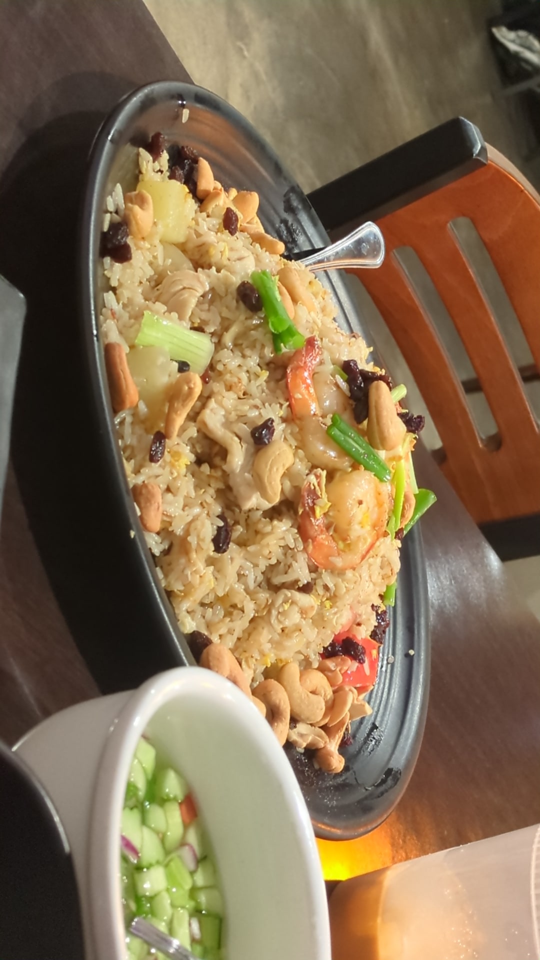 Read moreOMG??? EVERYTHING WAS SO GOOD??? Okay let me go in order. The Thai tea.. was the best Thai tea I've had in so long, and for the portion the price was just right in my opinion just as the other meals, PLENTY FOOD FOR SUCH REASONABLE PRICES IS CRAZY THESE DAYS. I got the kimchi tom yum, and omg. See I'm not s big soup person unless it's pho, and this tom up was so good you guys. SO GOOD. It was the right amount of spicy and sour and the kimchi tasted so fresh. We also got the cucumber salad, and this was new to me because I usually get cucumber salad at restaurants but the style, presentation, and taste was completely new. I liked it I definitely did enjoy it, it's my second favorite kind of cucumber salad right now. I also got the cream cheese wontons, the crispyness of the wonton itself was decent and the cheese was so smooth I enjoyed it AND IT WASNT ONLY 4 PEICES GUYS THIS IS IMPORTANT IT WAS LIKE 8 FOR AROUND 8 BUCKS??? WOW. My boyfriend got the pineapple fried rice, I'm not s big fan or fried rice or anything but he really liked it and it was a big portion and he almost finished all of it. I ASKED FOR BOXES FOR EVERYTHING BECAUSE GOOD FOOD LIKE THAT SHOULDNT BE LEFT BEHIND. The atmosphere was super calm and I really enjoyed myself please this place...
