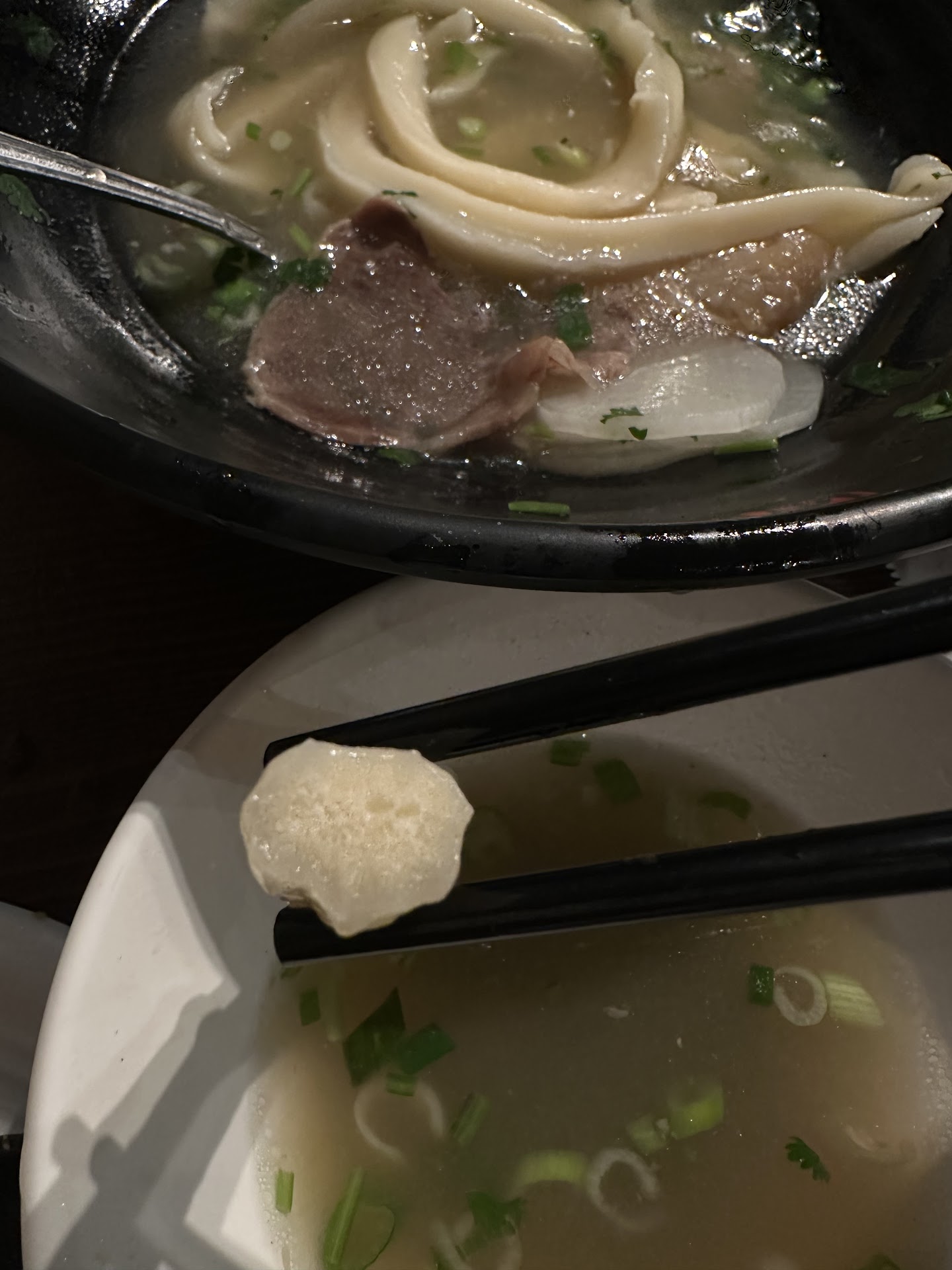 Then I noticed a long noodle in my bowl, white on one end, dark and discolored on the other. That’s when it hit me: these were reused noodles, boiled twice, possibly from another table or even the night before.