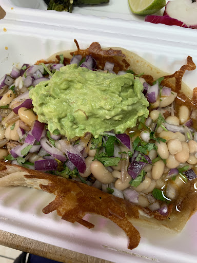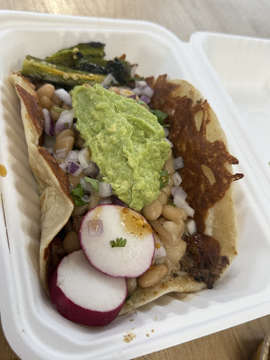 Perro taco- Prime flap meat, Peruvian beans, purple onions, cilantro, mozzarella, lime, radish, jalapeno, salsa & guacamole. It's all about the handmade tortilla. Dense, chewy & heavy enough to hold all the accoutrement within it. The flavor of the prime flap meat gets kinda lost, especially by the heaping amount of beans. Hearty, filling, stick to your ribs, the Perro taco is a meal unto itself
