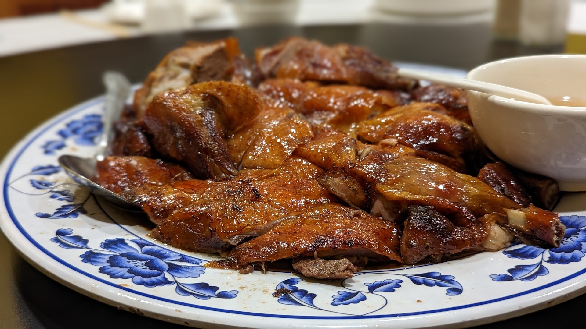 Time to pay, mind you the two Chinese guys in front of me paid by credit card, I was told cash only when I handed mine. On the way out, there was a piece of roasted pork that caught my attention so I asked how much is it for the piece, the person behind the counter said, minimum 1 pound. I left.