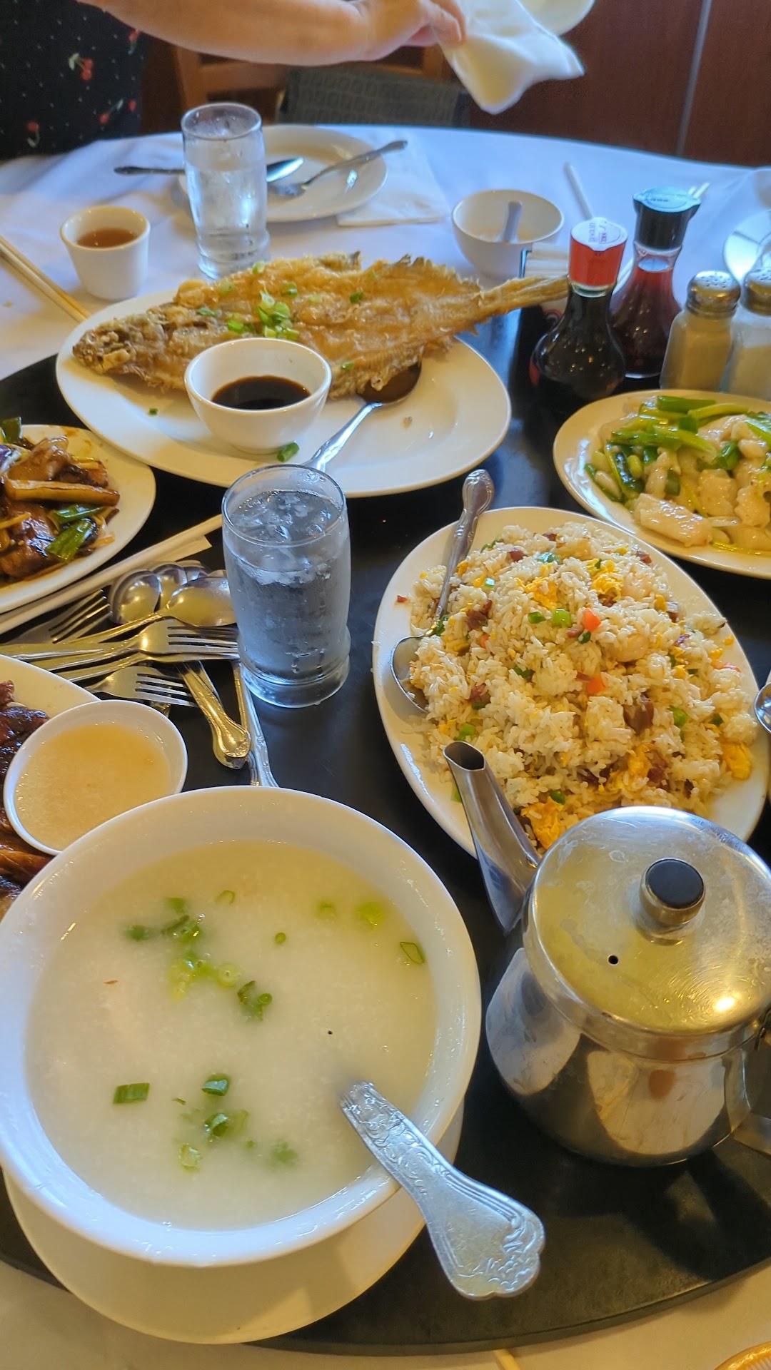 The food was mediocre at best. The fried rice was mushy (you'd think they will have this perfected.) The dish was bland. The free egg drop soup was borderline 3rd graders' homemade adhesive glue, too much cornstarch slurry not enough eggs dropping.