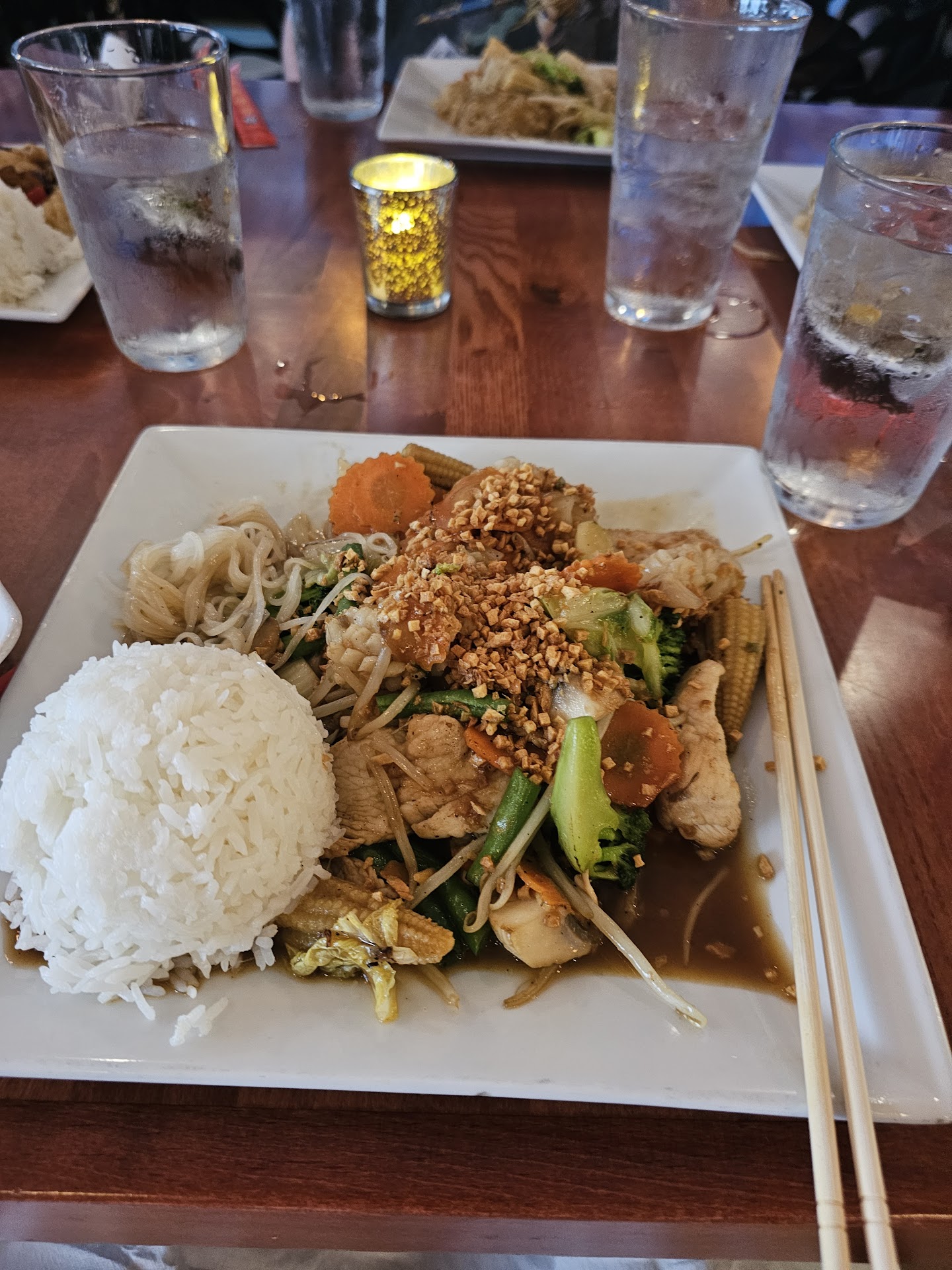 Food was great. There's a variety of Asian food options (Korean, Thai, Japanese, etc) but there was enough of a difference in flavor to overlook whT is normally a red flag (too many national options, not specializing).