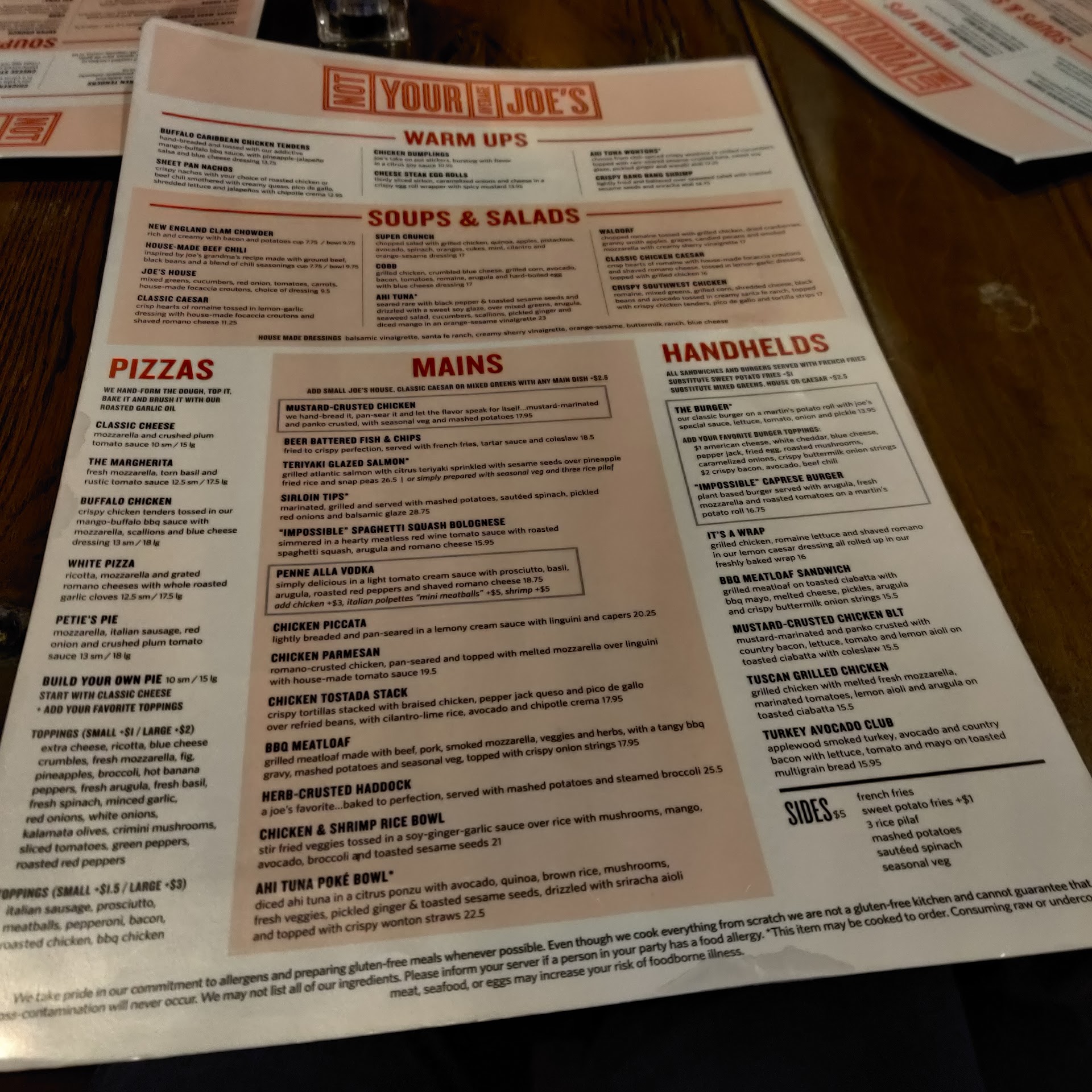 The food is definitely unique but typically not prepared well enough. The shrimp tacos are $15+, you get 2 and they have 2 cold, chewy shrimp on each and a tiny bowl of soggy flavorless rice and beans. Not acceptable, they should be cooked to order and fresh for that price. The meatloaf is consistently good. The beef choices they have are low end cuts. I guess they're going for the depression era method but at $22+ a plate I'd like to have tender red meat, something swallowable. Maybe add 10 hours to the cooking time. Besides the meatloaf, not a lot of food for the cost. Unfortunately they had one phenomenal meal on the octoberfest menu which only lasted a month; very frustrating. Whoever said the menu is huge hasn't been. Most items are repeated. 10 items repeated 3 times doesn't make for a huge menu.