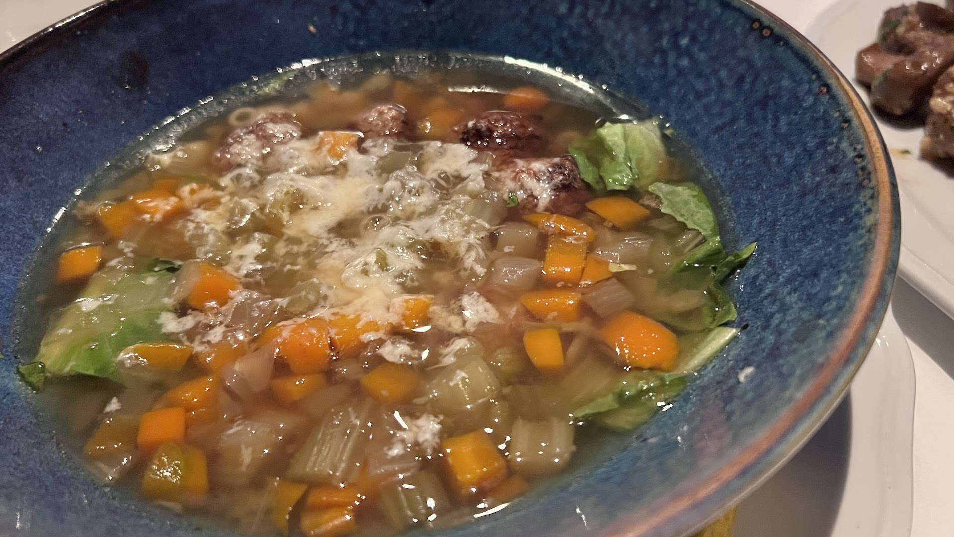 We ordered a huge variety of food (multiple appetizers, all three potato sides, and 3 different steaks). Despite a 5:30 reservation, they were out of the wedding soup on arrival. No big deal, things happen. Between the meatball, calamari and pommes frites, only the pommes frites really stood out. Actually of the entire meal the pommes frites were the best thing we ate. And considering we ordered 4 prime steaks that’s not a compliment. Most of the food wasn’t bad, per se, it just wasn’t good either. There was a significant lack of salt on every course that couldn’t be corrected tableside. The worst part of the meal by far were the potato wedges which seemed as if they could have been plucked out of the red light shelf at the local Convenient store.