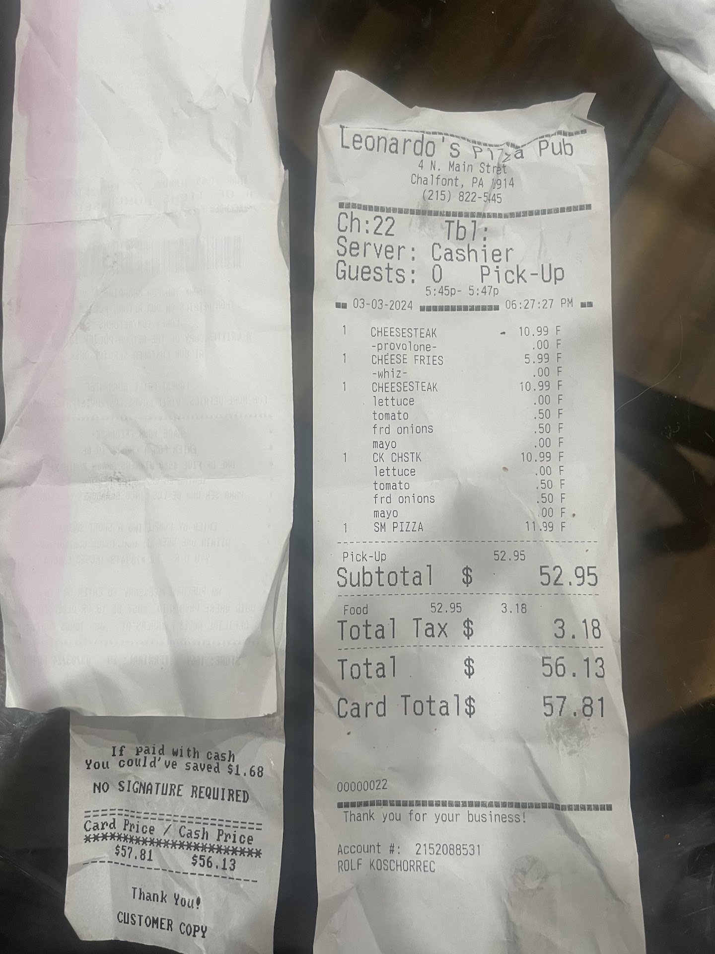 Leonardo’s food quality was atrocious when they were in their old location, but I wanted to give them another shot. I got a takeout slice once from the new location which was pretty decent, so we wanted to give them a shot in hopes that they had made positive changes overall. Short story: they didn’t.