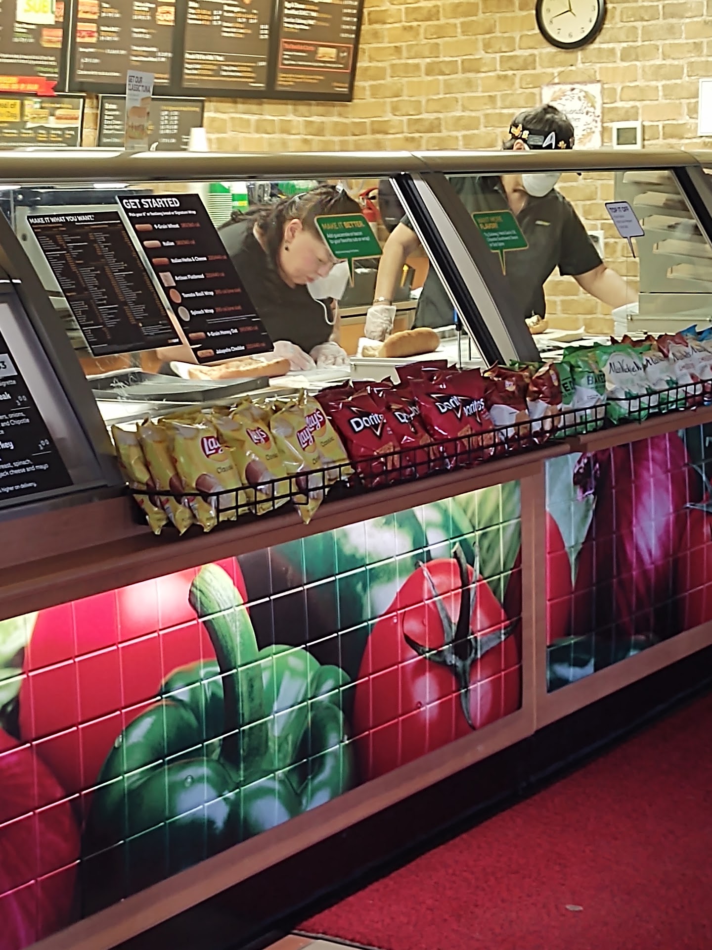 Read moreReally poor experience. From the outside, it is very pretty. But once in line to order, they only had enough bread for three 6" sandwiches at 7:15 on Sunday evening. It was another 40 minutes for more bread. One 6" white and one 12" honey wheat (and one flatbread). There were three of us eating and there were two more in line behind us. We had promised our kids they could have soda with dinner, then were informed it would be extra because they do not keep the small cups. Not only was it an up charge, they did not even ring them as kids meal with an upgrade. It was processed a-la-carte. I wanted to drink sweet tea, but the closest thing carried here is raspberry tea and half & half tea and lemonade. Or use sugar packets, but just not the same. I had the needed to use the bathroom while there. One sink is missing the knobs. The only trash can in the men's room was a foot operated lid... But would not open. Good looking place, and nice girls... But beyond that, don't...
