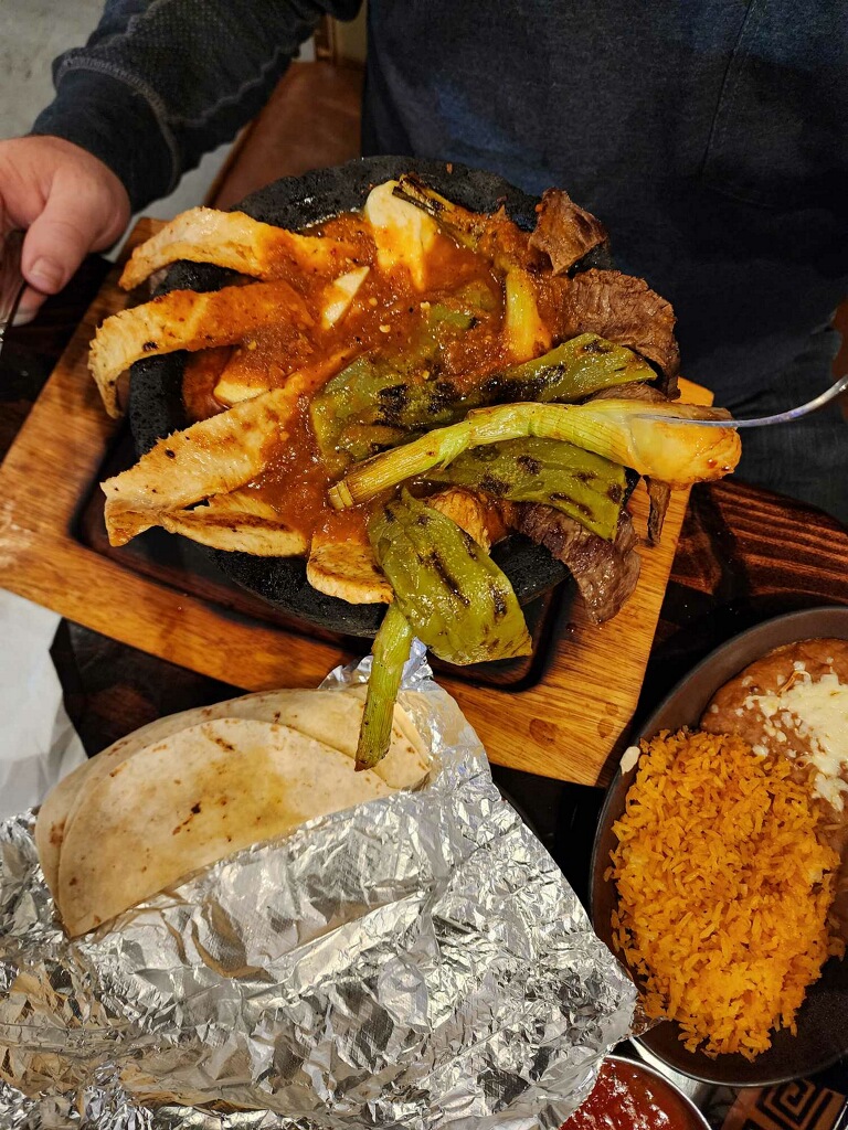 ย ย ย Read moreMy wife had the steak fajitas. She said they were seasoned perfectly and came out sizzling on the iron skillet cooked to perfection. I had the molcajeta maya, oh boy, these were of the chain! First of all I've never eaten cactus quite like this. It has cactus, chorizo, beef, chicken and shrimp in a stone bowl. I'm leaving a picture of it. It is impossible to eat out of the bowl; so, all for an empty plate to use. If you're not accustom to heat, I'm not usually a fan of spicy hot dishes, ๐ถ to let you know this one is spicy. Like Caribbean jerk at BWW hot. Even though it was above my comfort zone of heat I ate almost the whole plate of food. There is a lot; so bring your appetite. It was delicious I highly recommend this dish. Don't let the heat scare you away. It is worth it. If you like spicy food it probably will be mild to you...lol. The service was good. They were very nice just not always available; but very nice. The place was clean. At least until I got there. Oops. I tried to eat the dish from the stone bowl... that didn't work for me. Anyway, great food two thumbs ๐ ๐ up!...