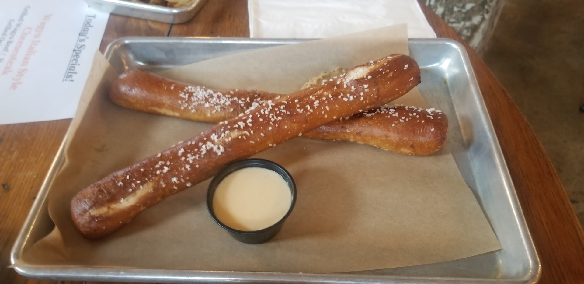 Unbelievably awesome food AND beer! I couldn't believe the Google rating was 4.6 for here! We ordered a flight of beer (2, 3, 5, 6, 8, & 10) which we really enjoyed. My favorite was Sly Fox Helles Gold (#2). Hubby's was Ginary (#6). Not sure why people are commenting that the beer tastes "watered down" & "bland" because it is some of the best beer I've ever had (and we visit BREWERIES & TASTINGS ALL THE TIME 😂🍻). They all had a crisp, clean mouth feel without any nasty, lingering aftertastes. It was great to be able to watch the beer being made through the viewing windows as we ate & drank. The atmosphere is super cool & laid back vibey. They have tons of stuff for kids to do which is fantastic and uber smart (they even have Galaga!). For food, we enjoyed the porkbelly steamed buns (lost my mind a bit groaning in delight over these!), York city soft pretzels (I love me some good soft pretzels! These were right up there with the best!), classic double for the kiddo (tasted it! Best burger I've had in a long time!), Luxe de Boeuf for the hubby (I tasted it, of course, & it was AMAZEBALLS), & the Hot Chicken (yum yum yum & MORE YUM 😍😋). In conclusion, if you enjoy super tasty beer, amazing food, & a laid back, comfy atmosphere, TRY IT OUT!