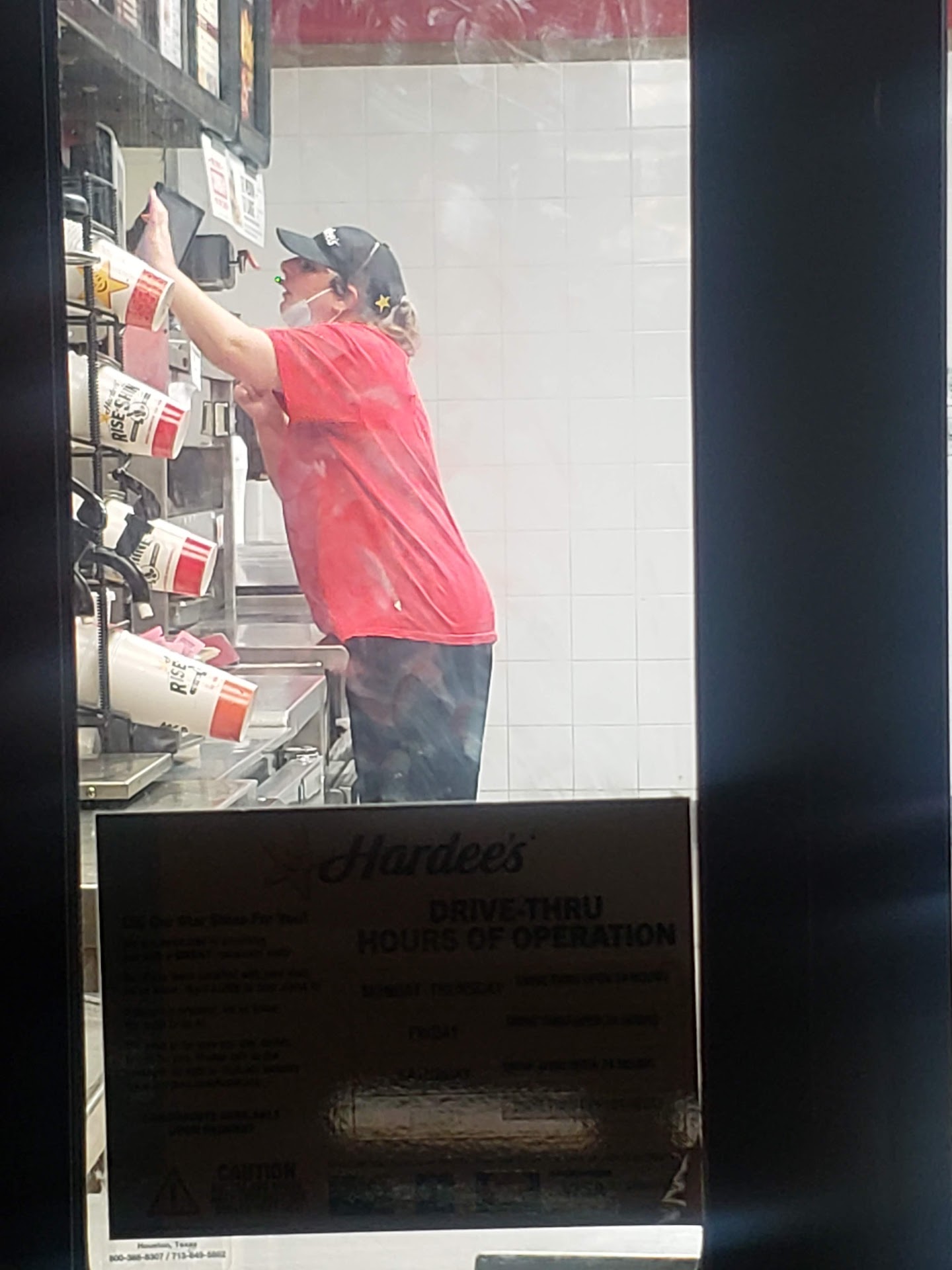 Probably one of my favorite spots to eat but not after the last experience I had. I sat for 5 mins trying to explain to the lady I wanted a big bag with a 5 piece tender, simple. Get up to the window to pay and again waiting. A line of cars begin to stack up behind me as Im waiting to pay for my food. Finally greeted by someone who doesn't follow covid guidelines or Hardees policy for that matter and wearing there mask to protect there chin, (which i did take a picture of after the fact since I didnt know what to do after waiting for my food for so long) to grab my card and again waiting for food for another 5 mins. The car behind me pulls off now after waiting so long. I finally get my food after 20 mins and begin driving home only to pull out cold half regular half curly fries after paying the upcharge for curlys. Disappointed that I sat for so long and couldn't even get fresh fries, I start to pull out more from the bag to realize that the only thing that was fresh after waiting for 20 mins was the damn hot ham and cheese. Tenders were cold as ice. Worst part is, I go in to talk to the manager the following day about the problem, and again with no care about covid rules he also doesn't care to wear his mask for his mouth and nose rather his chin, and tells me I'm in the wrong and he doesn't like me taking pictures of his employees that cant follow covid face mask rules/regulations. Told me to take it to someone who cared like corporate. Hands down the worst experience I have ever had. Wish I would have taken more pictures or recorded this. Absolutely ridiculous and unsafe behavior for an establishment so close...