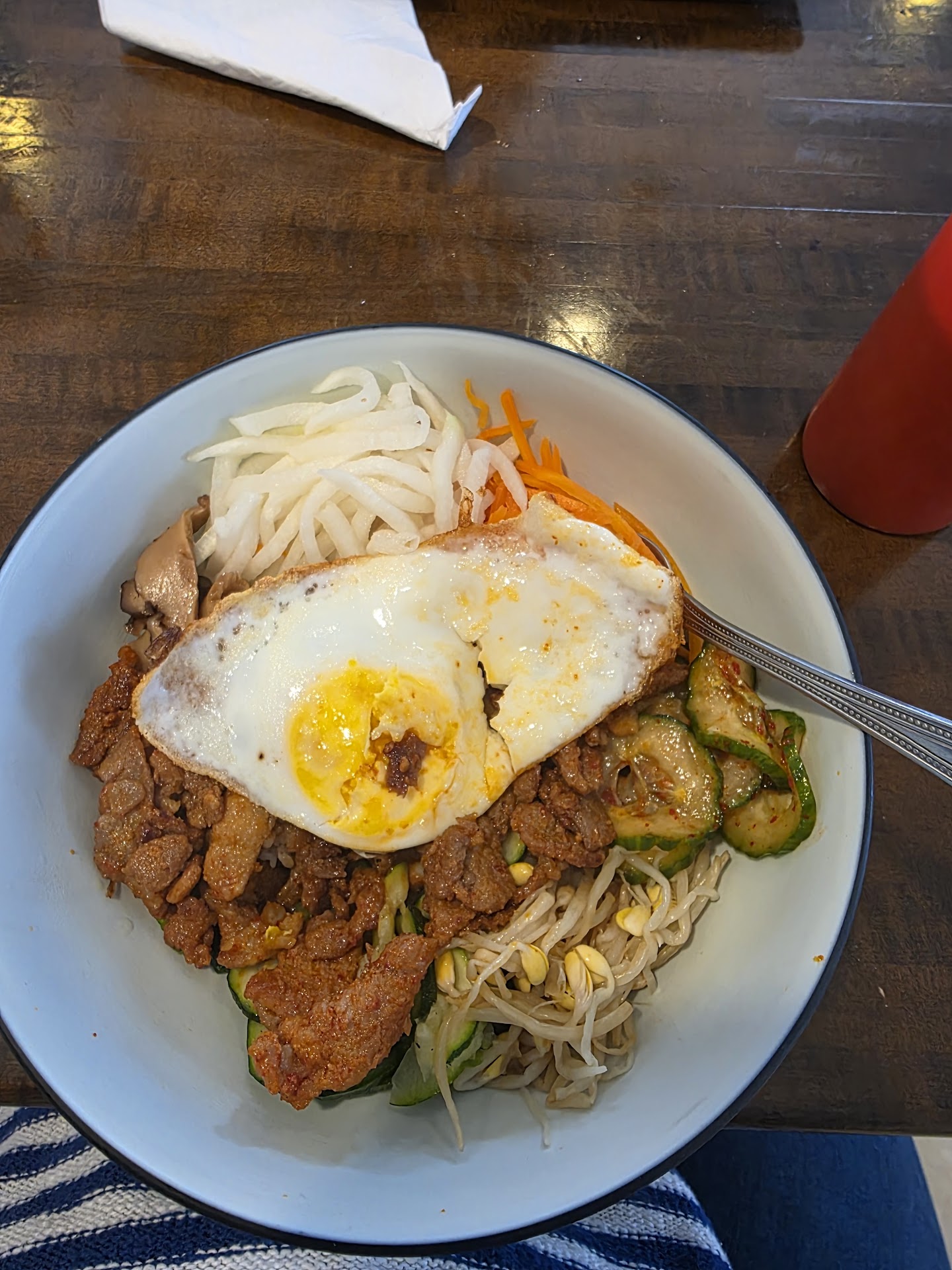 We were hoping for a great experience with very tasty thin sliced and well seasoned bulgogi, but ended up a bit disappointed in flavor, high cost, and quantity of food. We got 4 dinner meals (beef and chicken stone pots and shrimp fried rice). Flavor (4/10) - The flavor of the food was lacking, expecially the meats. Korean Bulgogi places are normally known for their great taste and flavored meats, but the meat had little more than its original flavor. Most bites just tasted like plain rice and vegetables. The red sauce wasn't too spicy and added some flavor, but not too much or it would be too spicy. Unfortunately, there wasn't really anything else to add flavor, but this dark sauce, which tasted alright (6/10), but we only got one teacup size container for 3 dishes! Miso soup (2/10) hardly had any flavor at all and definitely needs improvement. Cost/Quantity (5/10) - For the medium cost of about 17 dollars a person without drinks, it's hard to justify people not very full afterward. They admit (called to clarify) that there isn't really any difference between the "bowl" (cold) and "stone pot" (hot), same ingredients but stone pot costs $2 more?? Each dinner came with a miso soup, but it was probably literally one cup in each small container. Dinner meat in each dish was also lacking meat, and for over 17 dollars a person, it felt like just mostly rice and some mixed vegetables instead of what we came for -- the bulgogi! This place has a lot of potential, very friendly staff, but hope they improve to get some more...