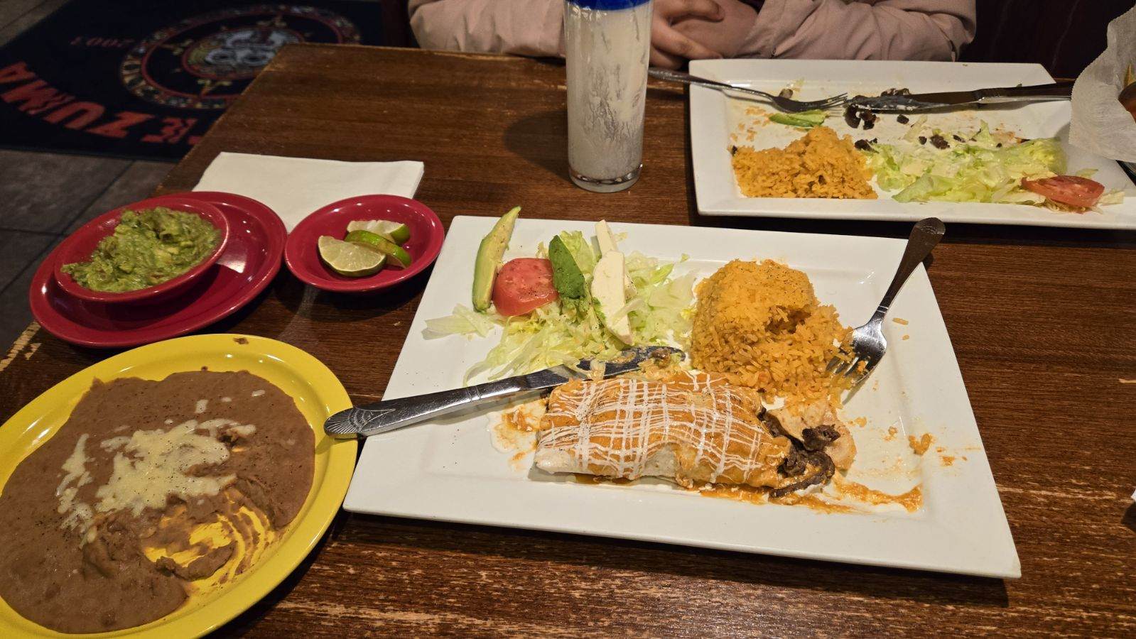 Read moreThe food is bad, unseasoned, and bland. We ordered 2 dinner burrito combos, side of beans, Guac, piña colada, and horchata. Nothing tasted fresh, had no seasoning, not even salt, chips were oily, Guac was bland and only tasted of onion, no spice at all.