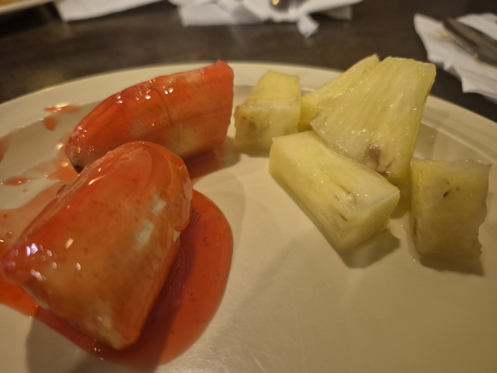 I'm gonna go out on a limb here and say, kitchen was short handed. I have a culinary background. I wanted to see the quality of this newly opened restaurant. I was sorely disappointed. We arrived at supper time, at "high traffic" time for meals being served. Nearly every item, including the essential steamed rice, was either gone, or item was barely there and looked old, hadn't been refreshed in quite some time. When I brought this to the attention of the hostess, she did go to the kitchen to alert of the situation, however, some of the items that we waited for, like wings, came out with blood still showing, under cooked, indicating "rush job" and I had to again bring it to her attention, as she tried to convince me to take the food. I took take out for 3 people..it was over $40, which is about right for these days, but for what I had to go through, was it worth it? I'll let you decide. I'm not sure if my family...