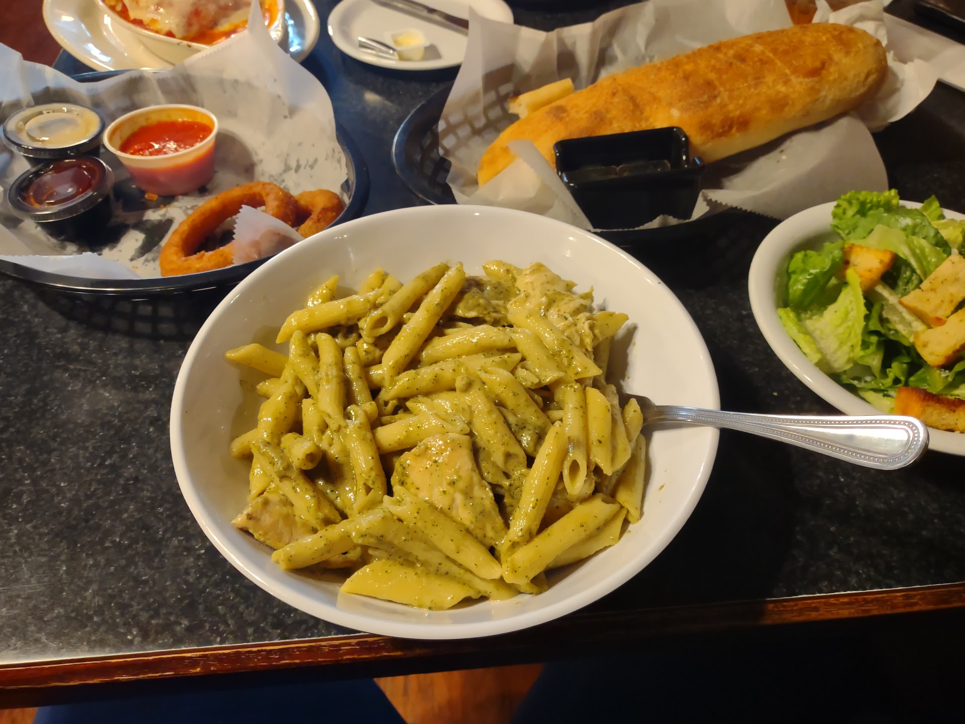 Read moreWe had a lovely early dinner in this comfortable, cozy environment. Our waitress, Eva, was very attentive and kind. Our food came promptly and hot. The bread was a big hit for our whole table. It was hot, fresh, and soft. Our pasta dishes proportionately had more pasta than"toppings," which is what I would call the additions. There weren't many shrimp (5?)on the shrimp pasta and I barely had vegetables and maybe 3/4 of a chicken breast on my pasta with a limited amount of sauce. the sauce flavors could've been a little stronger, but I could taste the raw seasonings on top, which made up for the lack of flavor and gave a nice touch. If I wanted a huge bowl of pasta this would've been perfect, however it was lacking the vegetables and meat for a Cacciatore dish, especially for the price. My husband's pizza was great to him as he enjoyed the sauce, which on his opinion makes a great pizza! Sub was described as tasteful. All in all. We had a nice time, nothing was majorly wrong. I'll add chicken to my leftovers, and all will be well. The food and service were good. If I goback, it'll be for the bread and to try another dish! Perhaps a sub.