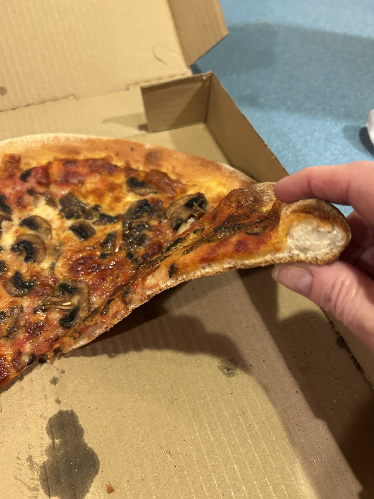 We used to absolutely love this pizza place, but after tonight, we won’t be returning. While our pizza was cooking around 8:45-9pm we witnessed a serious health violation: a staff member in the back picked up a dirty floor mat, smacked it on the floor, rolled it up & and tucked it away, then—without changing gloves—walked straight over to the oven and used the same gloves to turn our pizza.