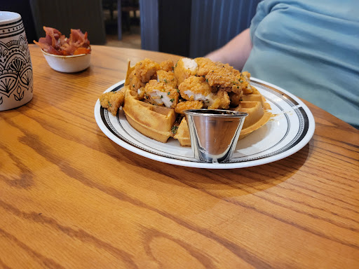 Read moreWe stopped by after church around 11:20. We sat at the table in front of the bar. We waited over 20 minutes to be acknowledged by anyone, my mother had to go up to the bar to ask one of the waitresses for menus. The only response she gave was “oh! I didn’t even notice you, I’ll get you some menus.” I had to stop my father from walking out because we wanted to try the food. After we ordered (Ethan was our waiter, he was very friendly) we watched the two bartenders behind the bar, honestly, they weren’t doing much. The one with darker glasses just stood behind the bar drinking her drink. The other with colorful glasses only interacted with guests at the bar. (There was only one couple there at the time) there was another man not wearing a uniform behind the bar talking to the same couple the whole time, we’re unsure if he was the owner. We waited almost an hour to even get food. However, the food was decent, the chicken and waffles are the best dish by far. We were disappointed to see that the only way it seems you can get service, is if you sit at the bar and...