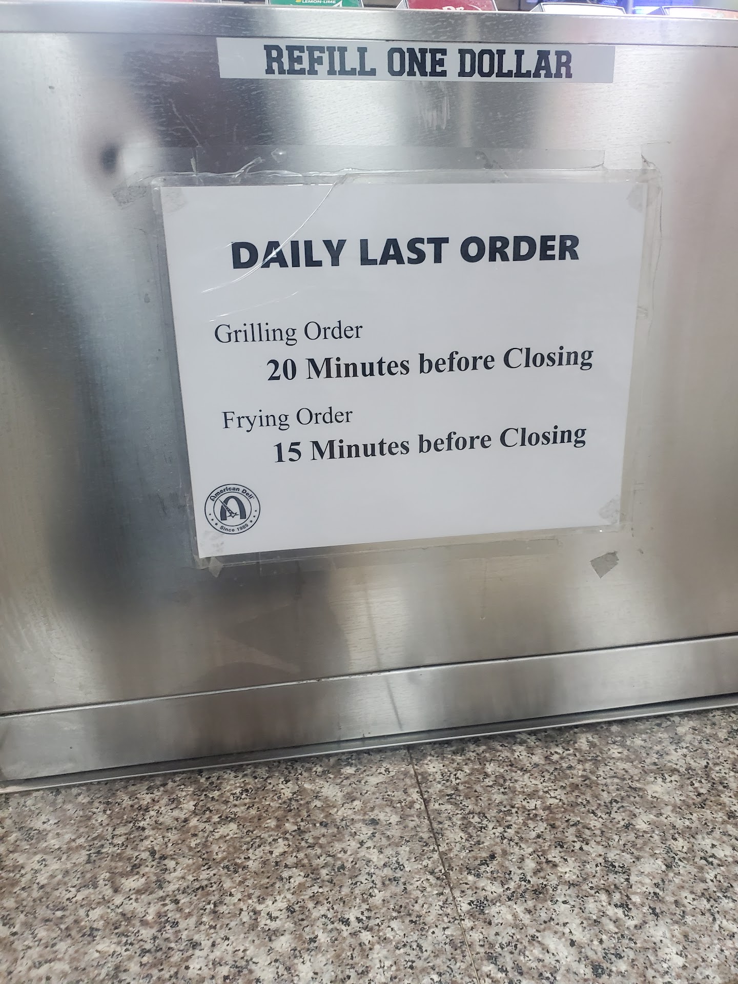 Read moreThe food was good. Your classic american deli i ordered the philly cheese steak with fries. I wanted honey bbq put onto my fries but i was told a rule for this location is that their not allowed to do that. You have to purchase it on the side. Other locations add the sauce no problem they just charge as if its on the side. Already a little annoyed but then im told itll be $1.50 for the tiny honey bbq on the side 50 cent for honey and $1 for bbq. If i was actually getting my fries tossed and they were saucy i wouldnt mind paying that but im getting a tiny container that wont even last half of my fries. I was told its $3 for a cup of ice (WILD) and to top it off despite it saying close at 9 this location actually closes at 840/45pm they stop taking orders. I think its absurd to advertise closing at 9 but its actually 20 mins earlier. A few people were turn away because of the time. Which sucks because they used their gas to drive here to make it according to whats online 9pm, just to not make it because of the "rules" . The employees were nice and had decent customer service. I think all the owners crazy rules makes this location one I wouldn't want to frequent especailly when other locations have less rules and i can be happy with my order being fullilled to my desired request and they close at the time...