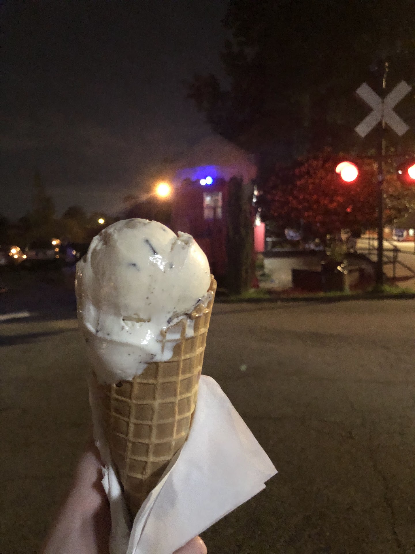 We got a scoop of banana pudding ice cream in a waffle cone, a scoop of chocolate chip cookie dough in a bowl, and half cookie dough and half cookies and cream in a waffle cone. It came out to a little more than $12, before tip, which isn’t too bad. The banana pudding was amazing, with actual vanilla wafers in it. The cookie dough and cookies and cream were really good too. Half and half scoop is the way to go because you get more ice cream out of it.